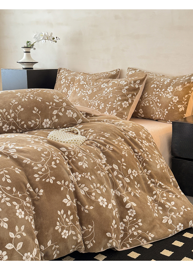 懒猫家纺 2025新款印花海獭绒加厚保暖四件套 叶纷飞