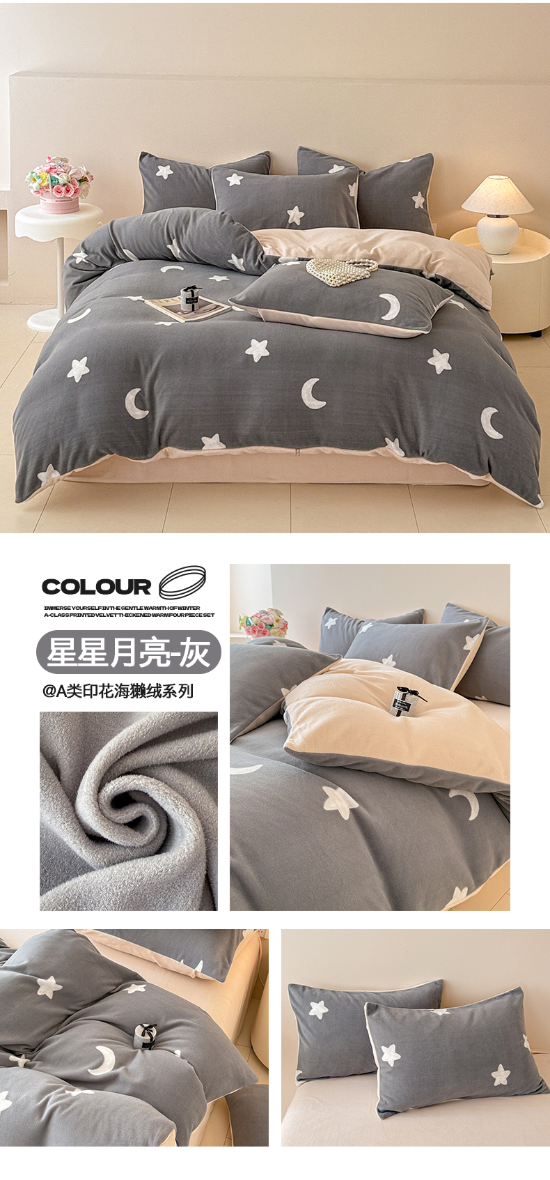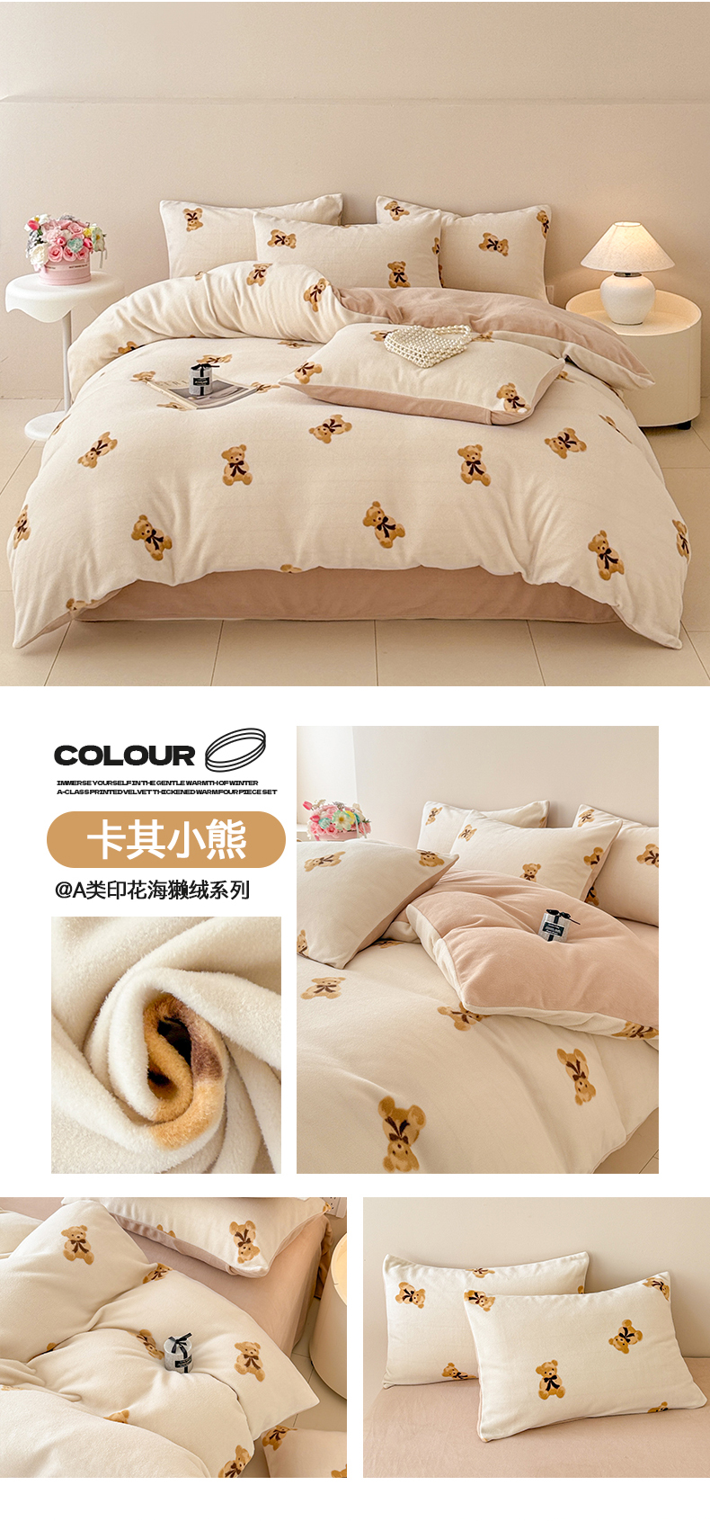 (总)懒猫家纺 2025新款亲肤舒适牛奶绒四件套-可可小姐系列,可可小姐-瓷白,可可小姐-水粉