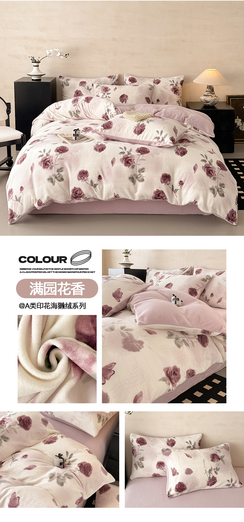 (总)懒猫家纺 2025新款亲肤舒适牛奶绒四件套-千寻花语系列,千寻花语-豆沙,千寻花语-玫紫,千寻花语-米咖,千寻花语-奶杏,千寻花语-雅绿,千寻花语-银灰