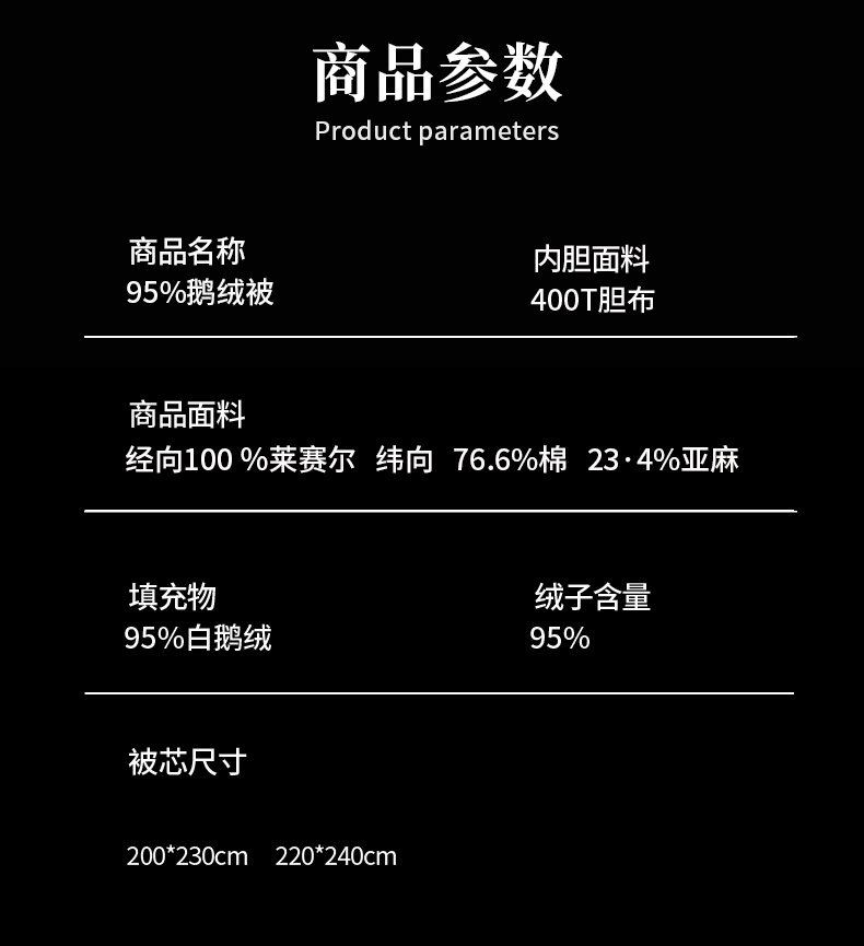 200x230cm填充1100克95白鹅绒 秋冬被 | ¥1880.00 |