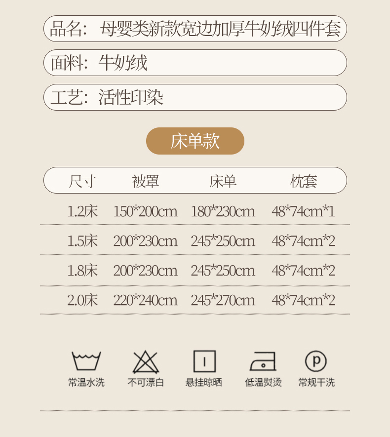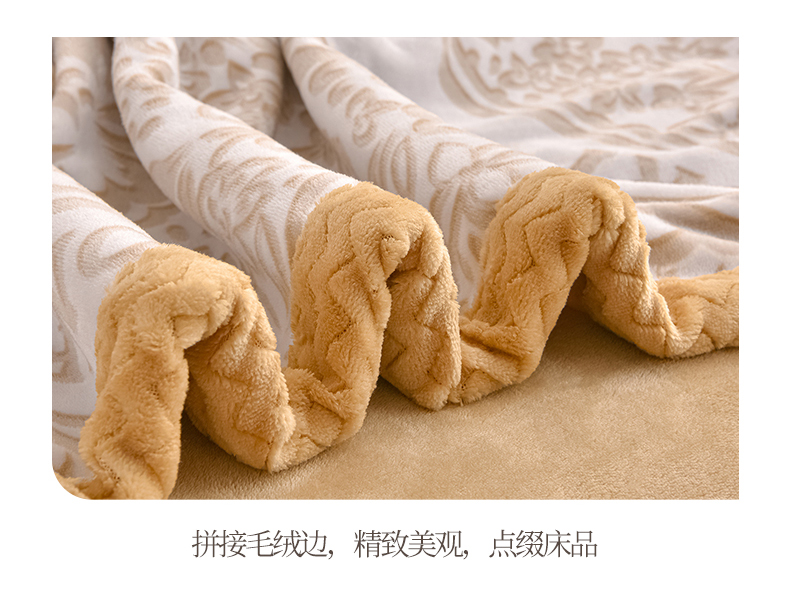 商品名称:董成龙家纺 2025新款直播爆款牛奶绒四件套雕花压线款法莱绒四件套11 盛世年华-棕咖