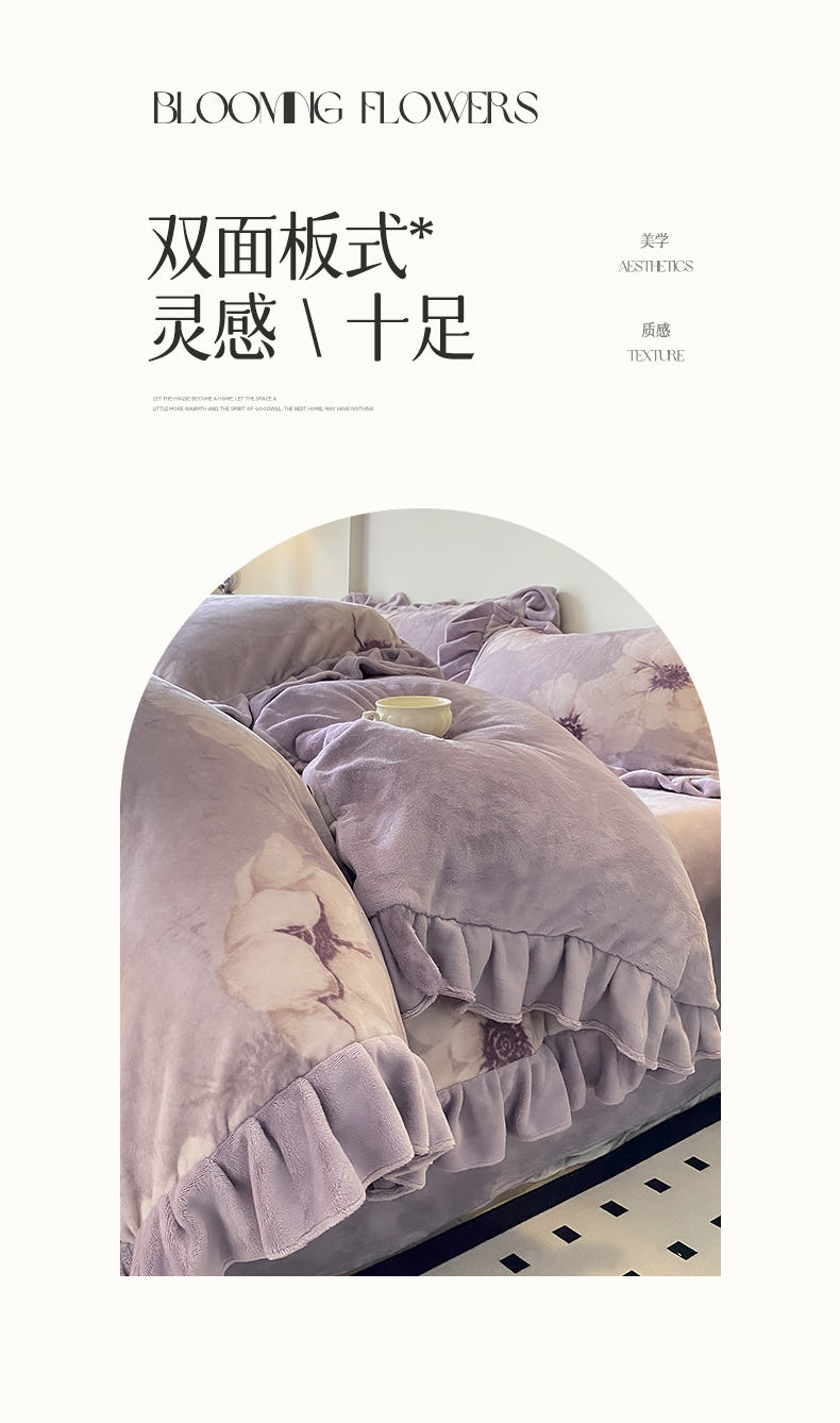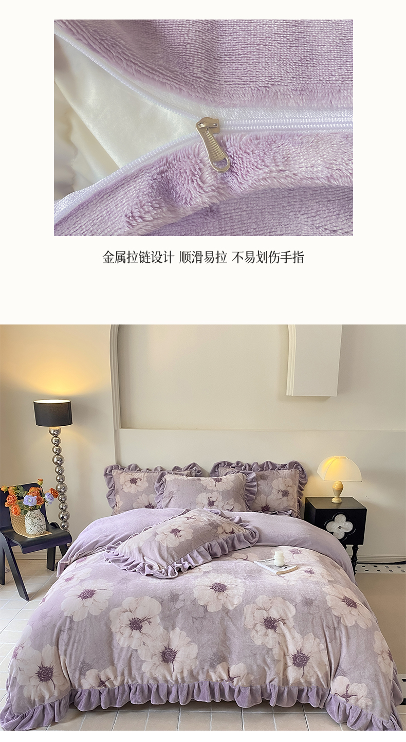 当前位置: 91家纺网 > 商品网购 > 床品套件 > 四件套 > 牛奶绒四件套 > 锦彩家居 2025新款高克重牛奶绒花边款四件套-花屿愿 虞美人 紫