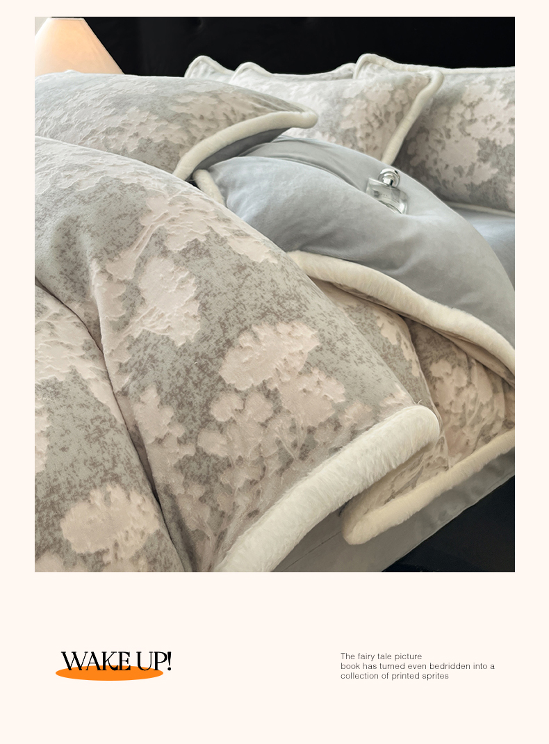 极简 2025新款立体雕花牛奶绒四件套系列 丽塔-灰
