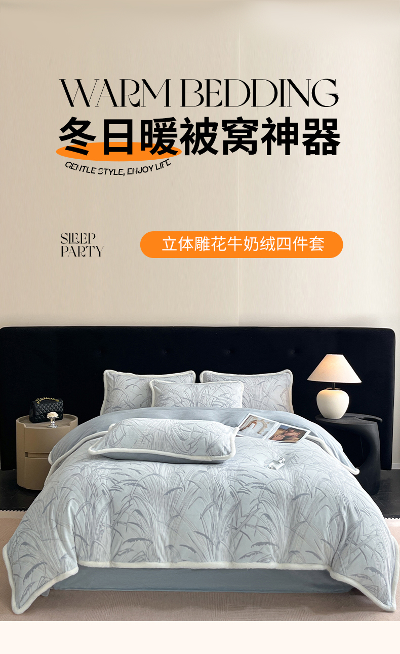 (总)极简 2024新款兔毛宽包边立体雕好牛奶绒四件套-米莱,米莱-冰蓝,米莱-草绿,米莱-豆蔻紫,米莱-湖蓝,米莱-米月白,米莱-藕粉,米莱-鸭蛋灰