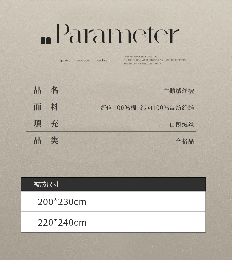 白鹅绒丝 200-230 填充1100克 春秋被