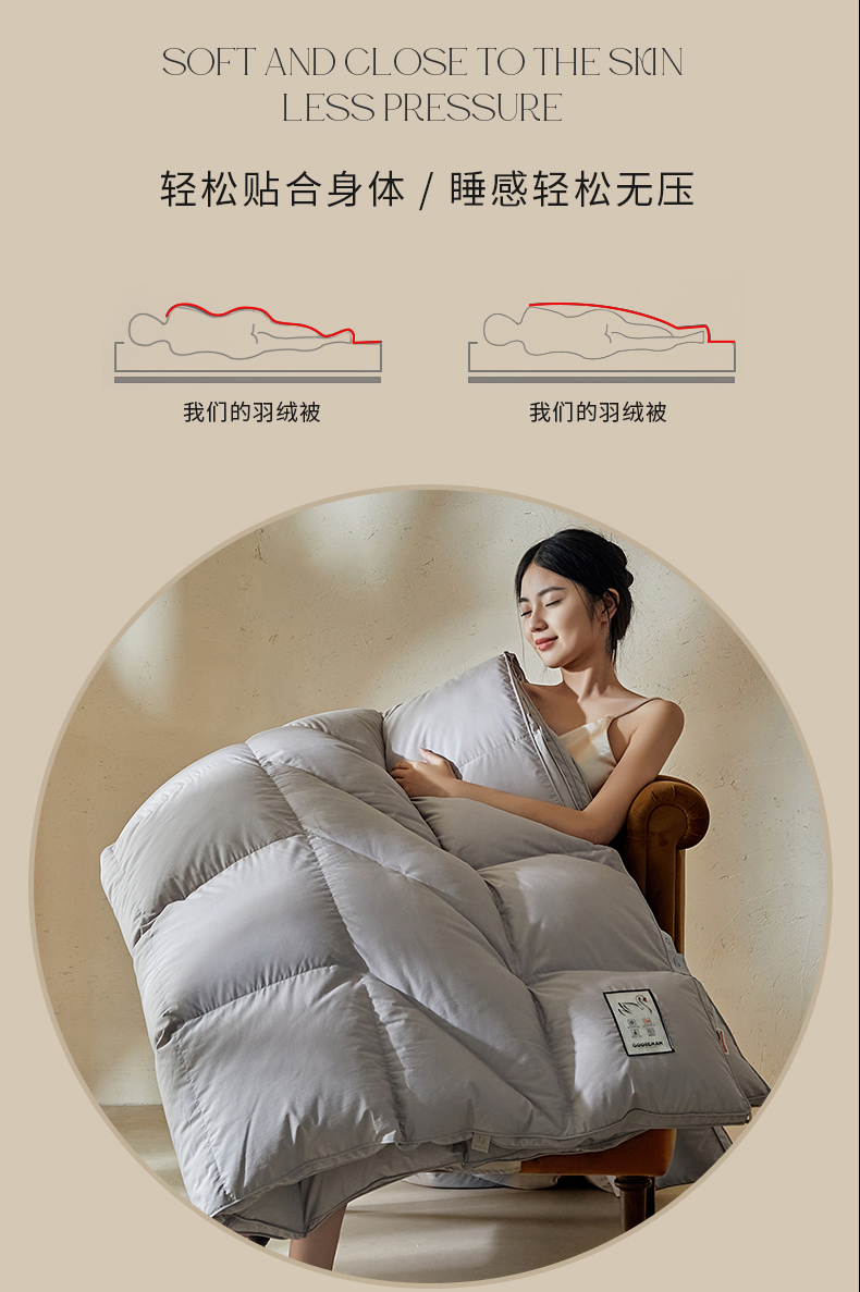 商品名称:(总)暖羽屋羽绒馆 2025新款人体工学被鹅绒丝被芯 羽绒被子春秋被 羽毛被 双人冬被