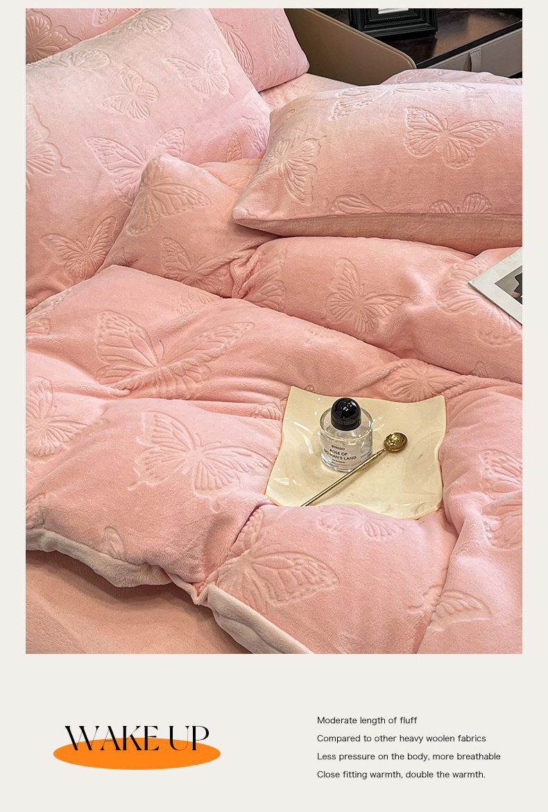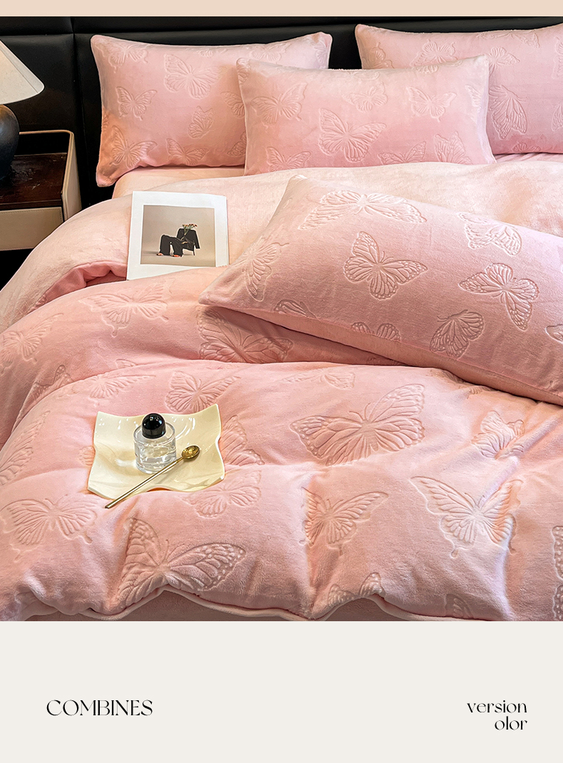 星座家纺 2025新款牛奶绒雕花四件套 蝴蝶翩翩-粉