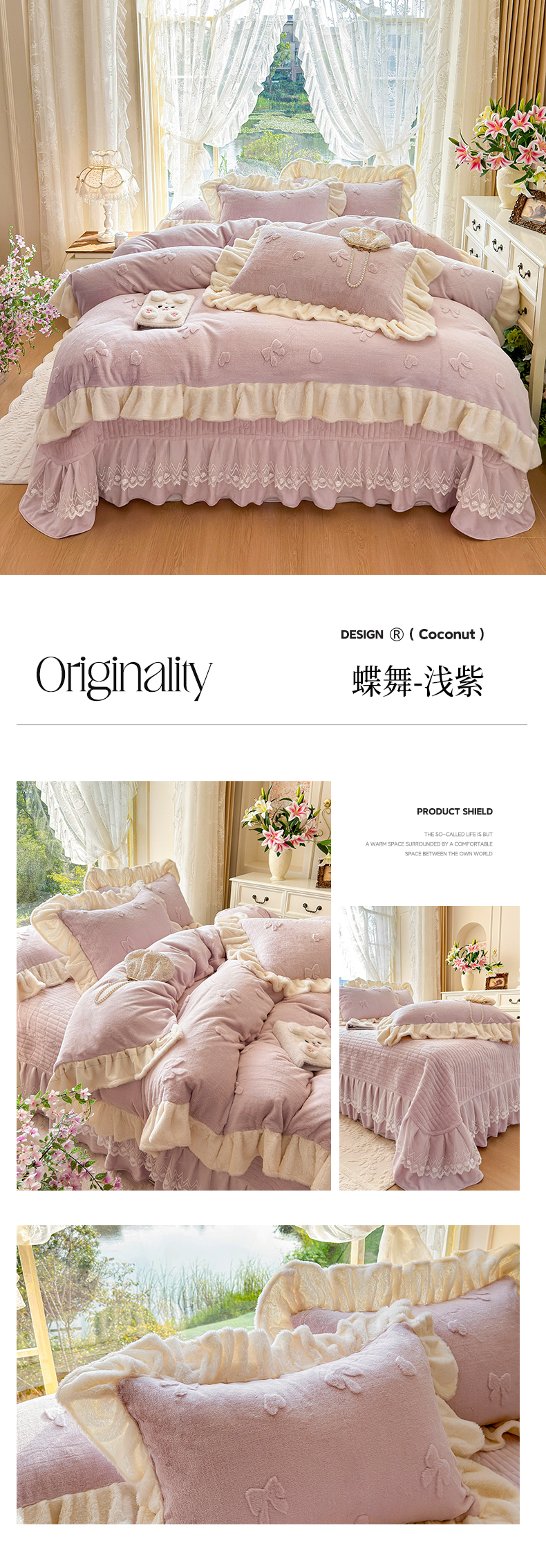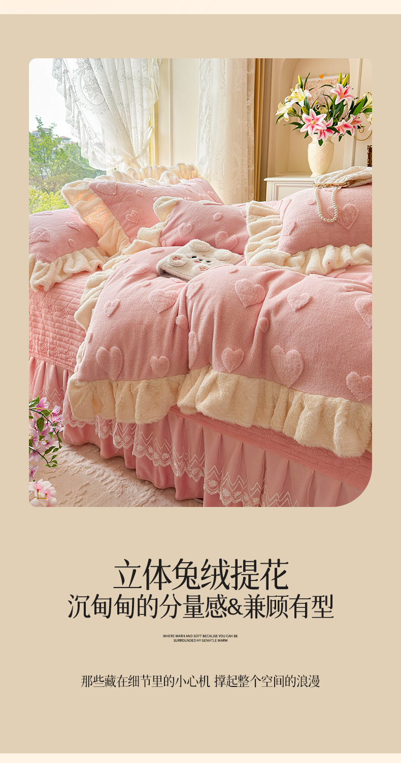 (总)宜凡家纺 2025新款兔绒提花牛奶绒夹棉床裙四件套,爱心 少女粉,爱心 粉紫,爱心 驼色,蝶舞 大红,蝶舞 米色,蝶舞 浅紫,蝶舞 玉色,简爱 苍青,简爱 豆沙紫,简爱 玉色,樱桃 苍青,樱桃 豆沙紫,樱桃 奶油白