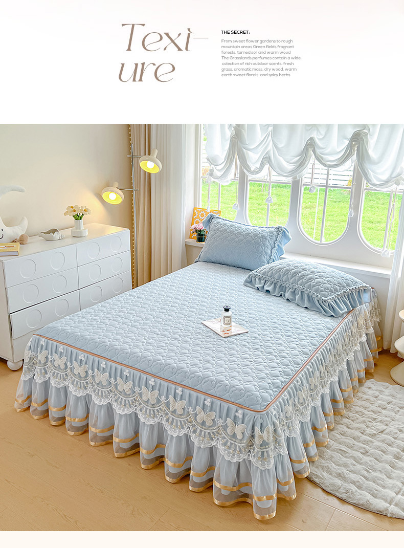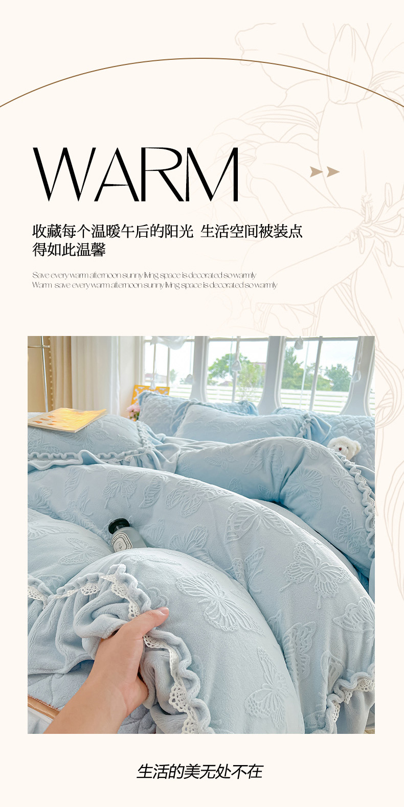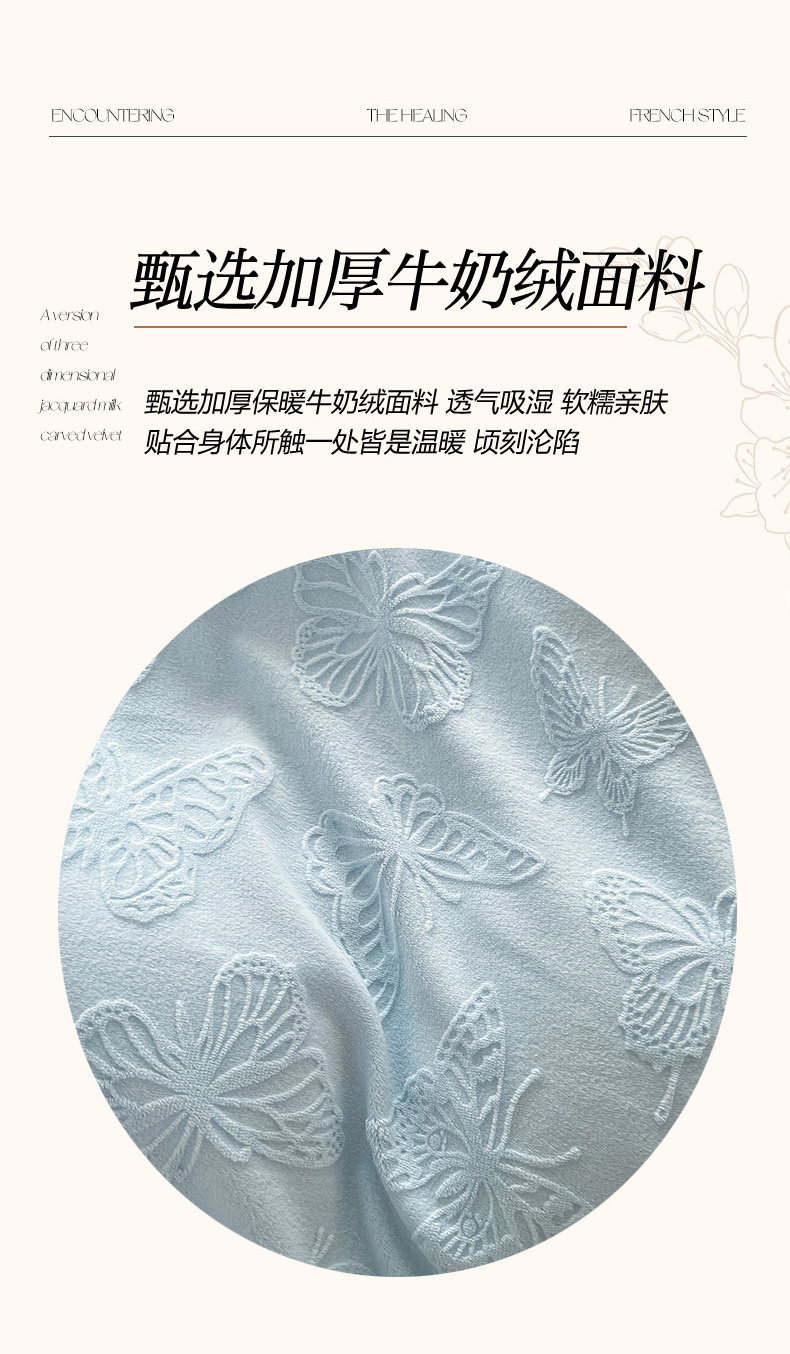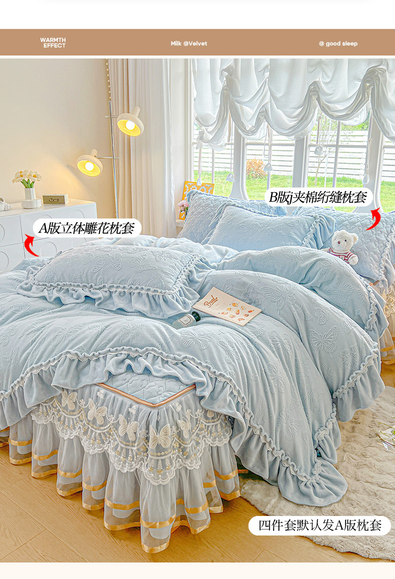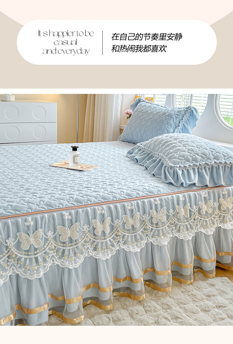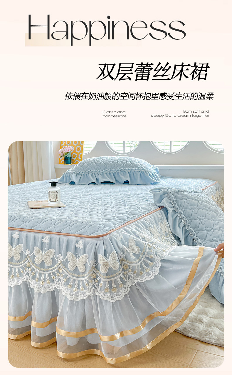 当前位置: 91家纺网 > 商品网购 > 床品套件 > 四件套 > 其它四件套 > 罗艺轩 2025新款简约雕花牛奶绒可拆卸床裙四件套蝶恋(已申专版,严格控价) 蝶恋-蓝