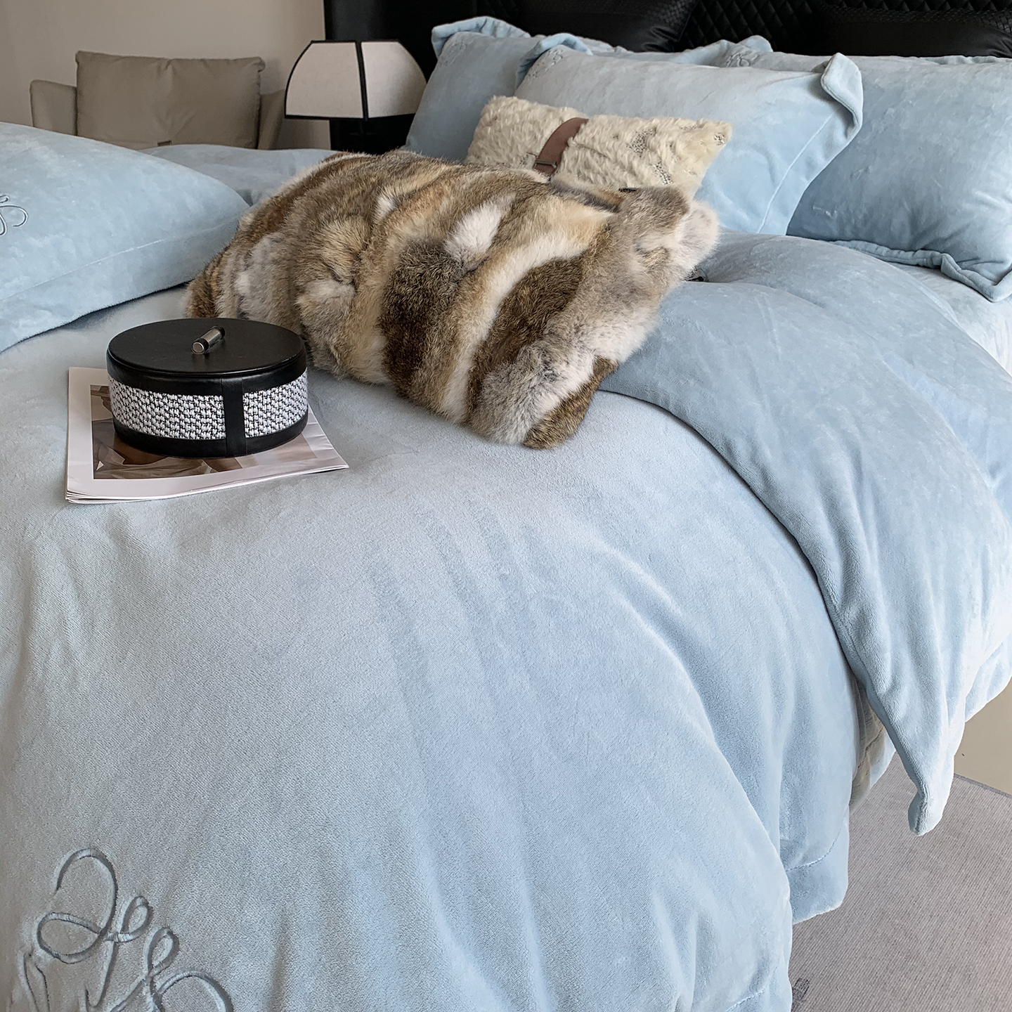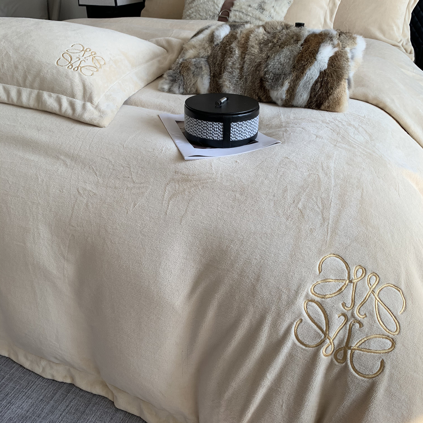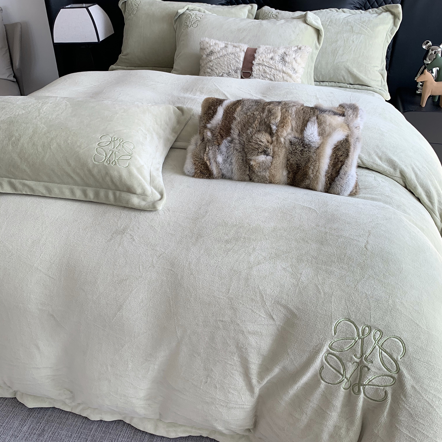莱豫家纺 2025秋冬新品加厚牛奶绒刺绣款四件套宽边工艺全消光牛奶绒 罗意威玛瑙灰
