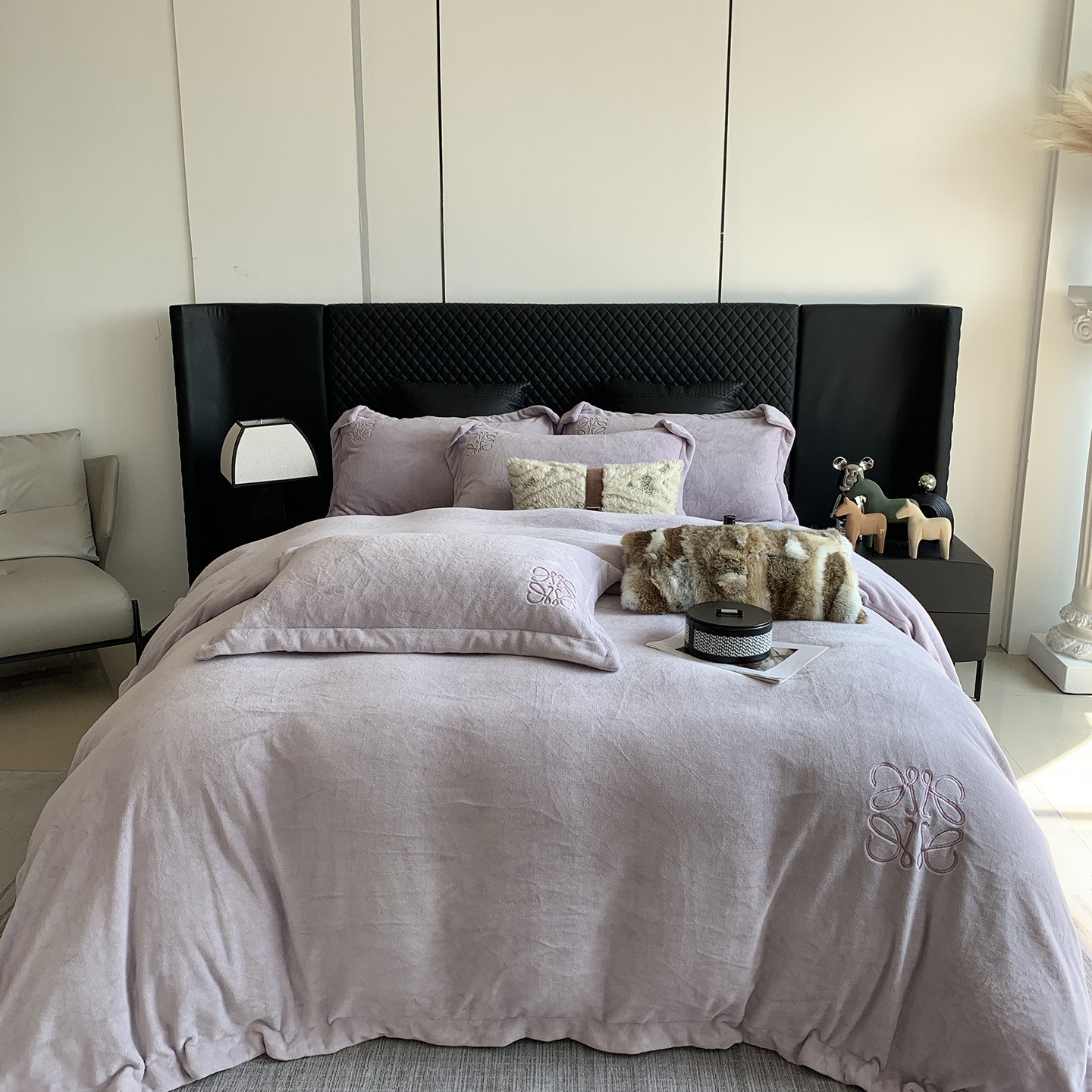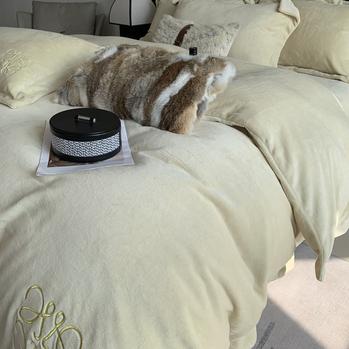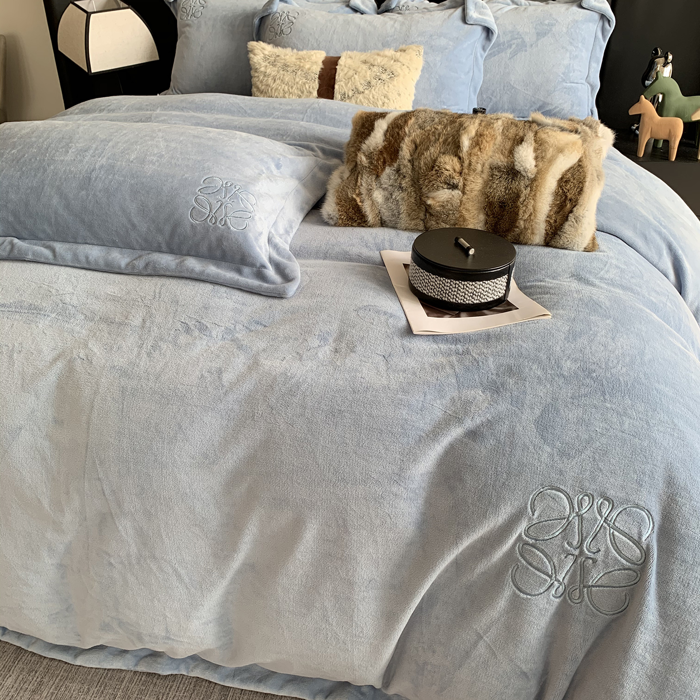 莱豫家纺 2025秋冬新品加厚牛奶绒刺绣款四件套宽边工艺全消光牛奶绒 罗意威玛瑙灰