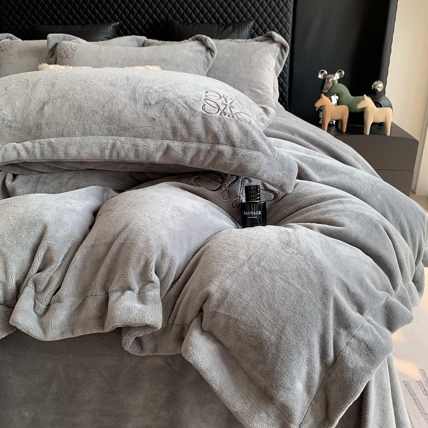 商品名称:莱豫家纺 2025秋冬新品加厚牛奶绒刺绣款四件套宽边工艺全消光牛奶绒 罗意威玛瑙灰