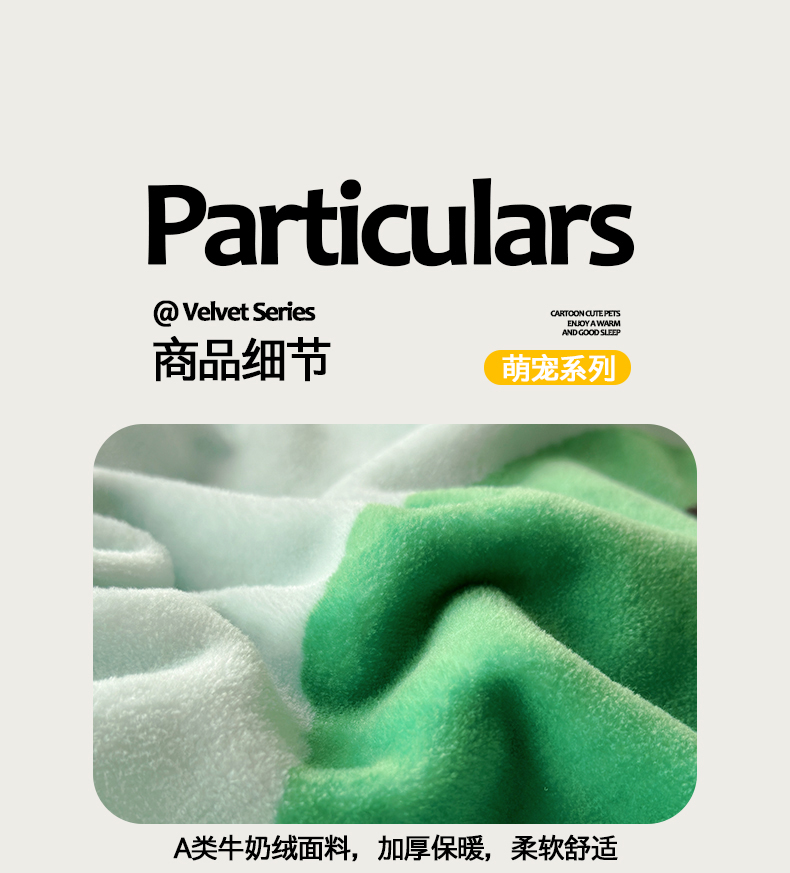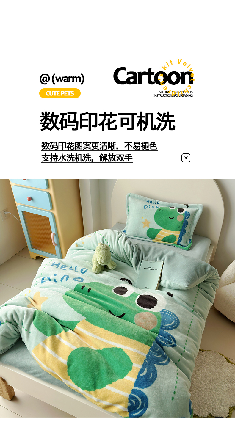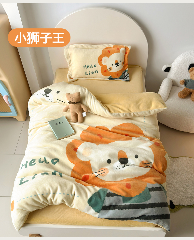 商品名称:(总)荷马之梦 2025新款A类牛奶绒数码印花原创卡通大版儿童幼儿园被套三件套-萌宠系列