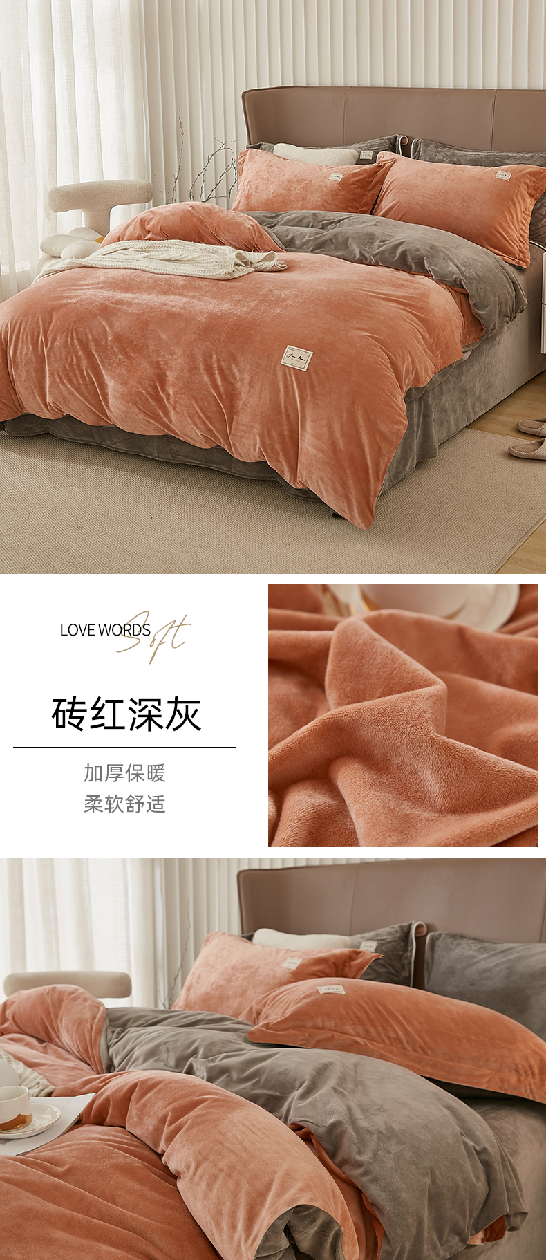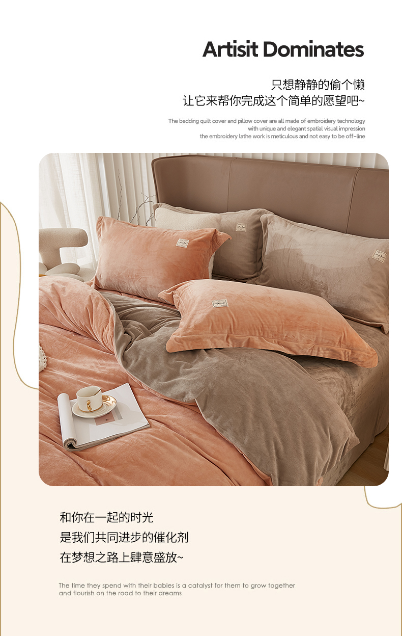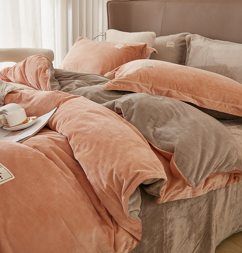 悦然毛巾被 2025新款高克重德芙绒双拼四件套 暖玉米咖