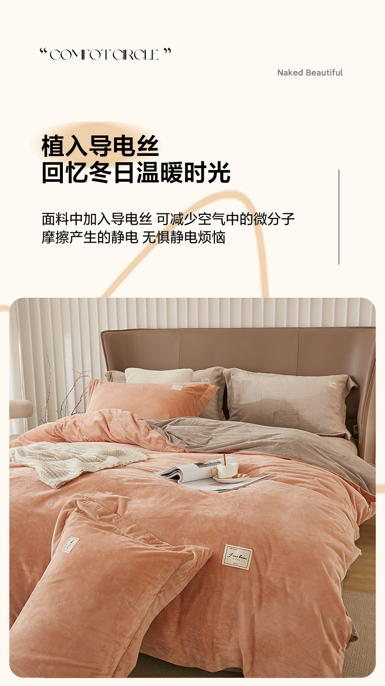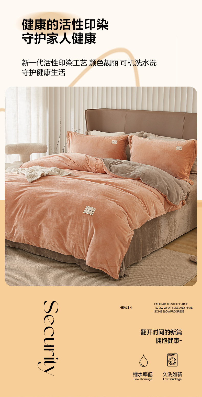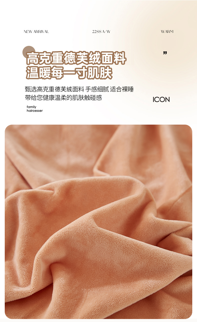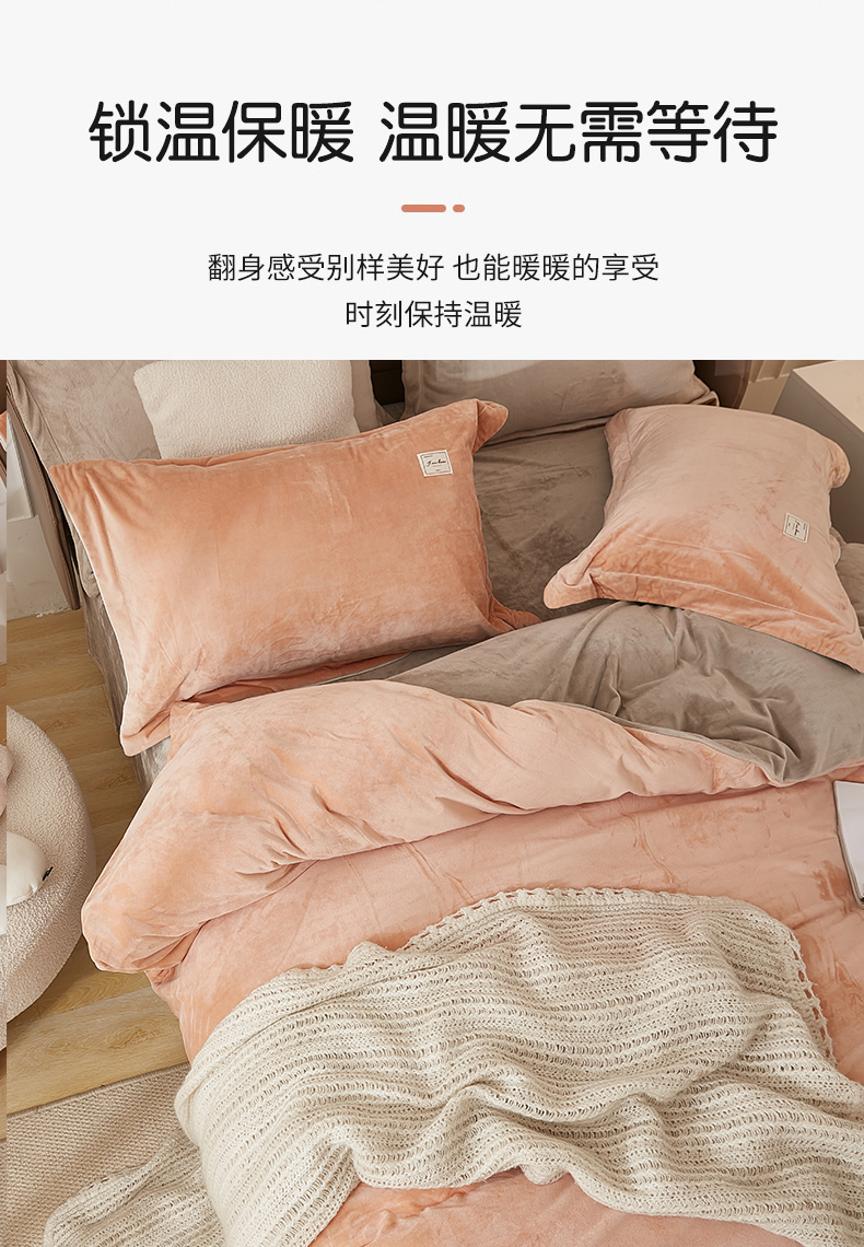 商品名称:悦然毛巾被 2025新款高克重德芙绒双拼四件套 暖玉米咖