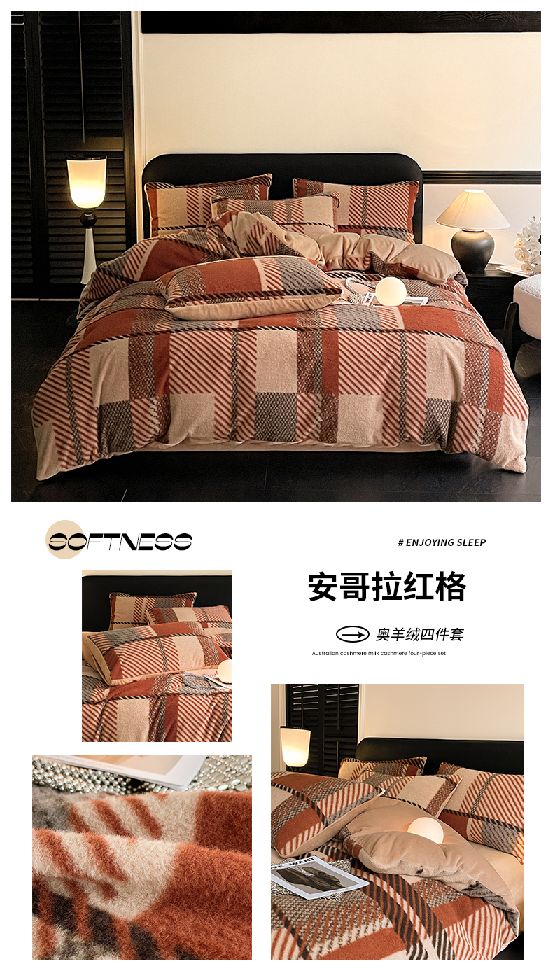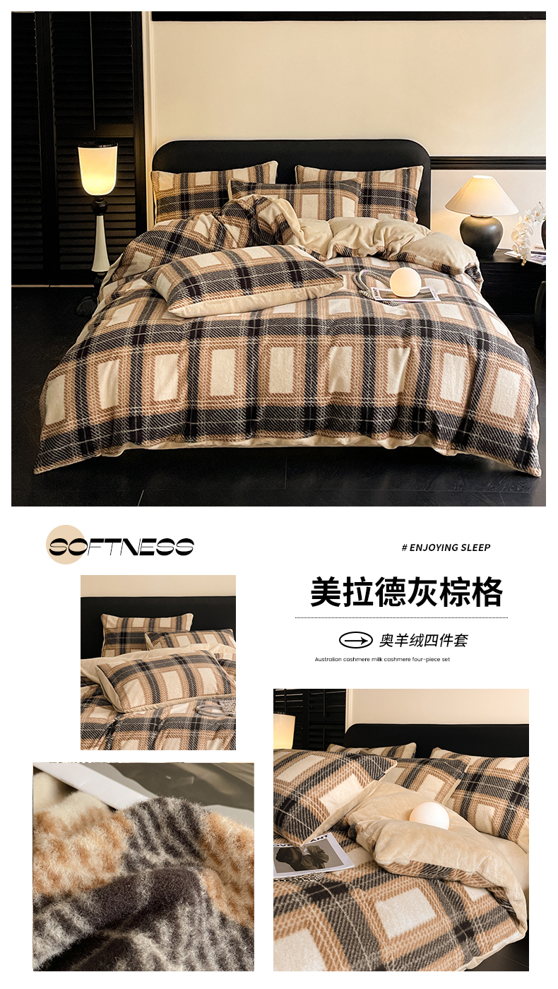 商品名称:宜代光年 2025新款澳羊绒保暖四件套 挪威蓝格