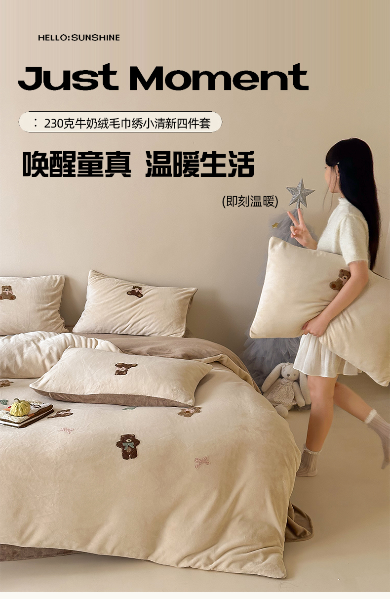 当前位置: 91家纺网 > 商品网购 > 床品套件 > 四件套 > 牛奶绒四件套 > FORTWO家纺原创设计(FOR TWO家纺) 2025新款230克牛奶绒毛巾绣小清新卡通款四件套 饼干熊