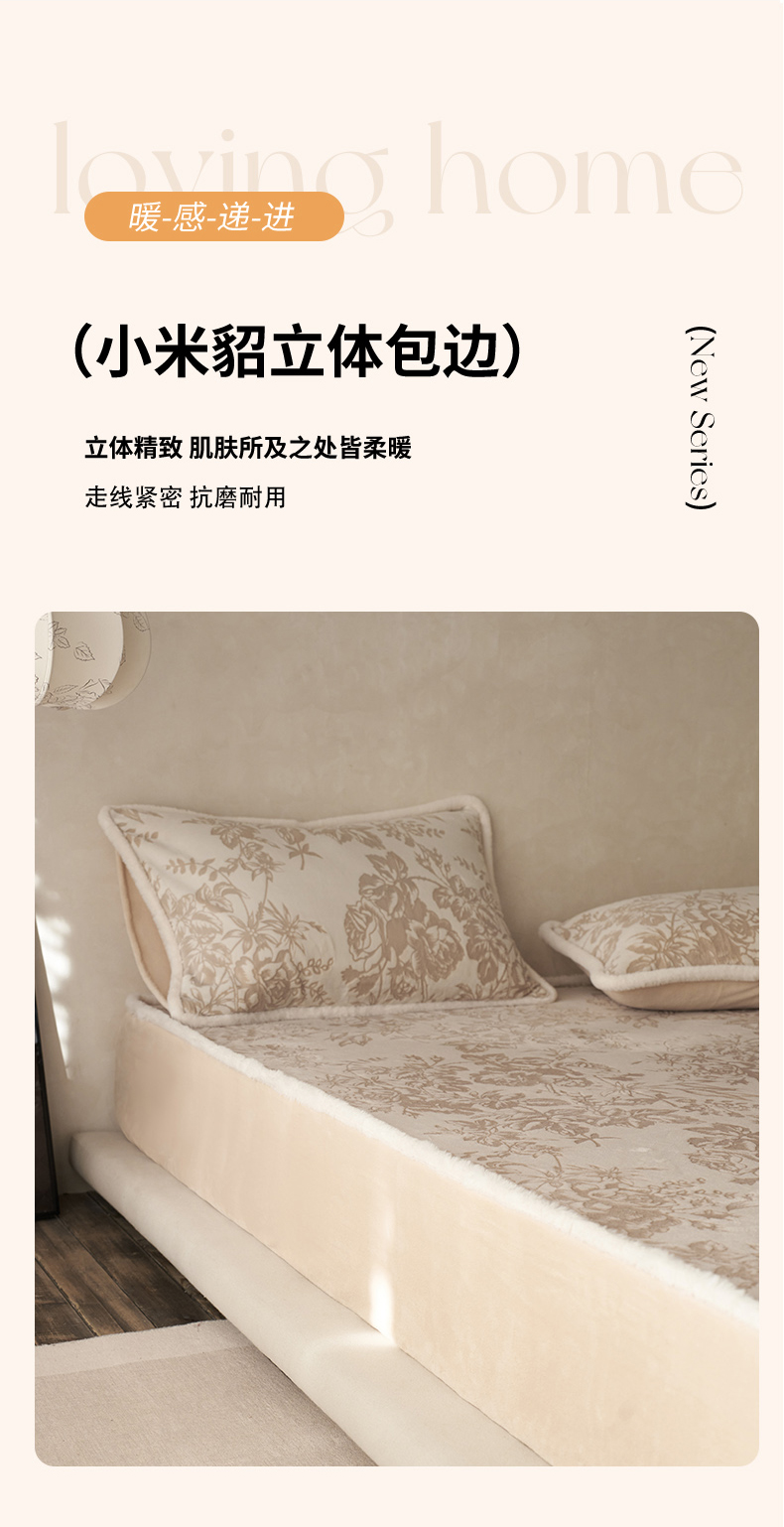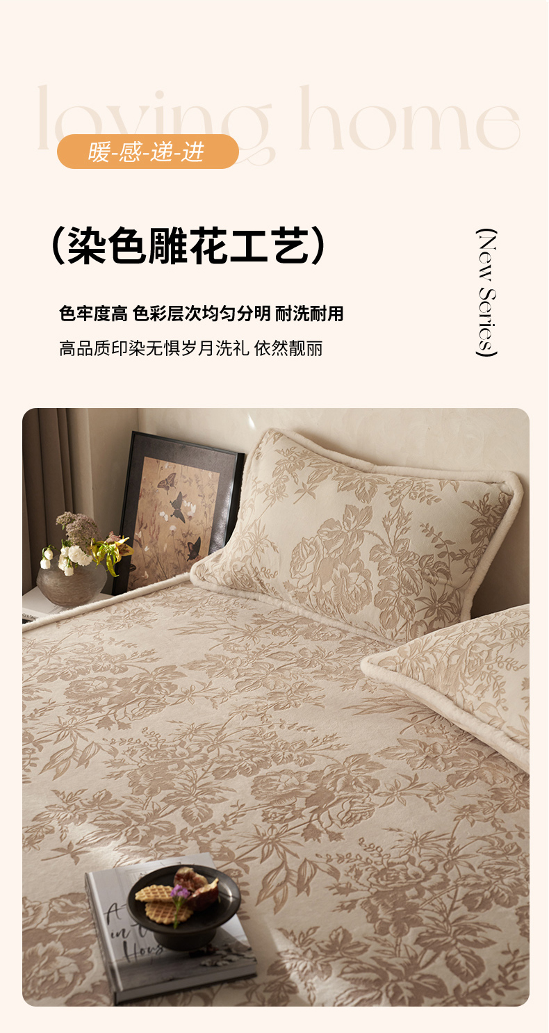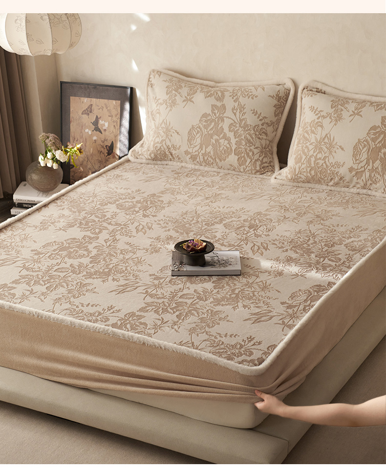 商品名称:宜代光年 2025新款A类小米貂复古牛奶绒染色雕花单床笠 静若繁花-咖