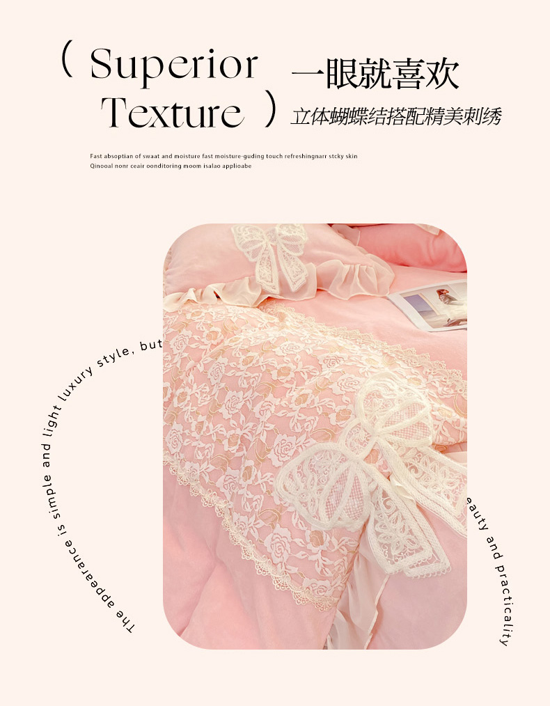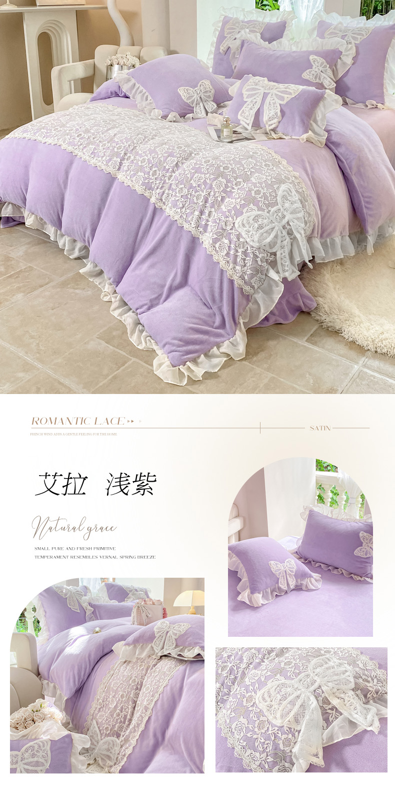 当前位置: 91家纺网 > 商品网购 > 床品套件 > 四件套 > 其它四件套 > 米可 2025新款立体蝴蝶结公主风牛奶绒蕾丝花边四件套-艾拉系列二 艾拉-浅紫