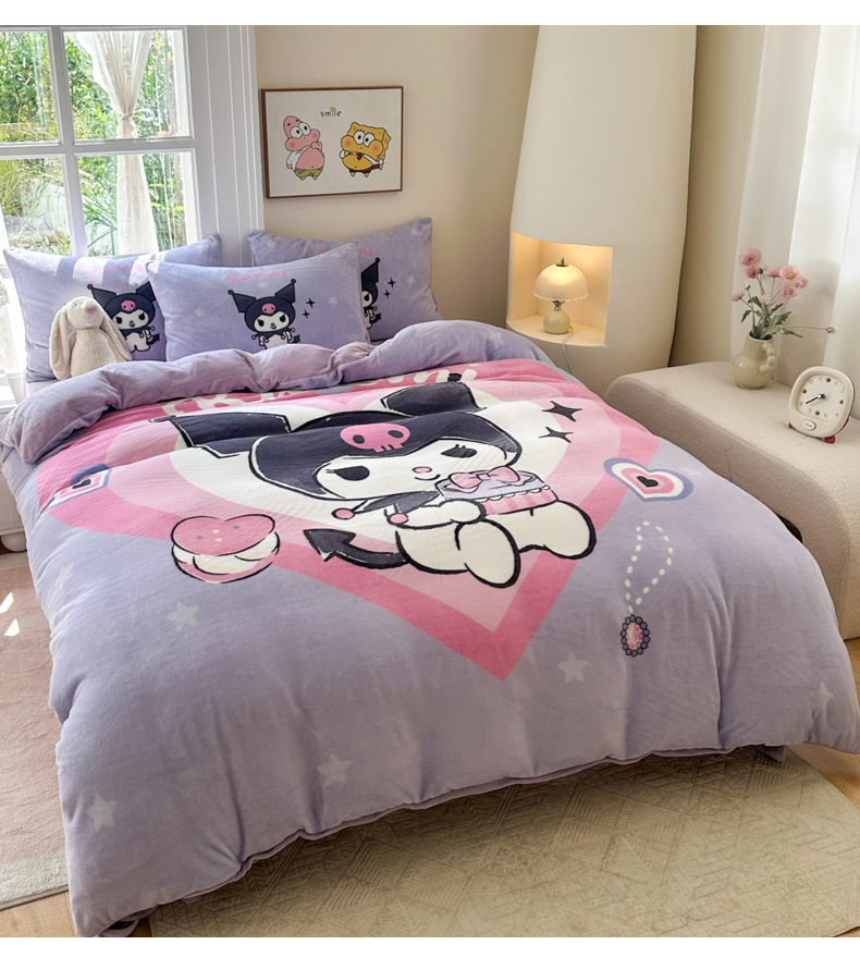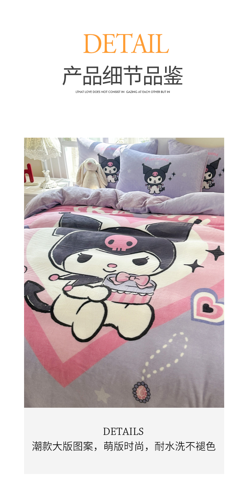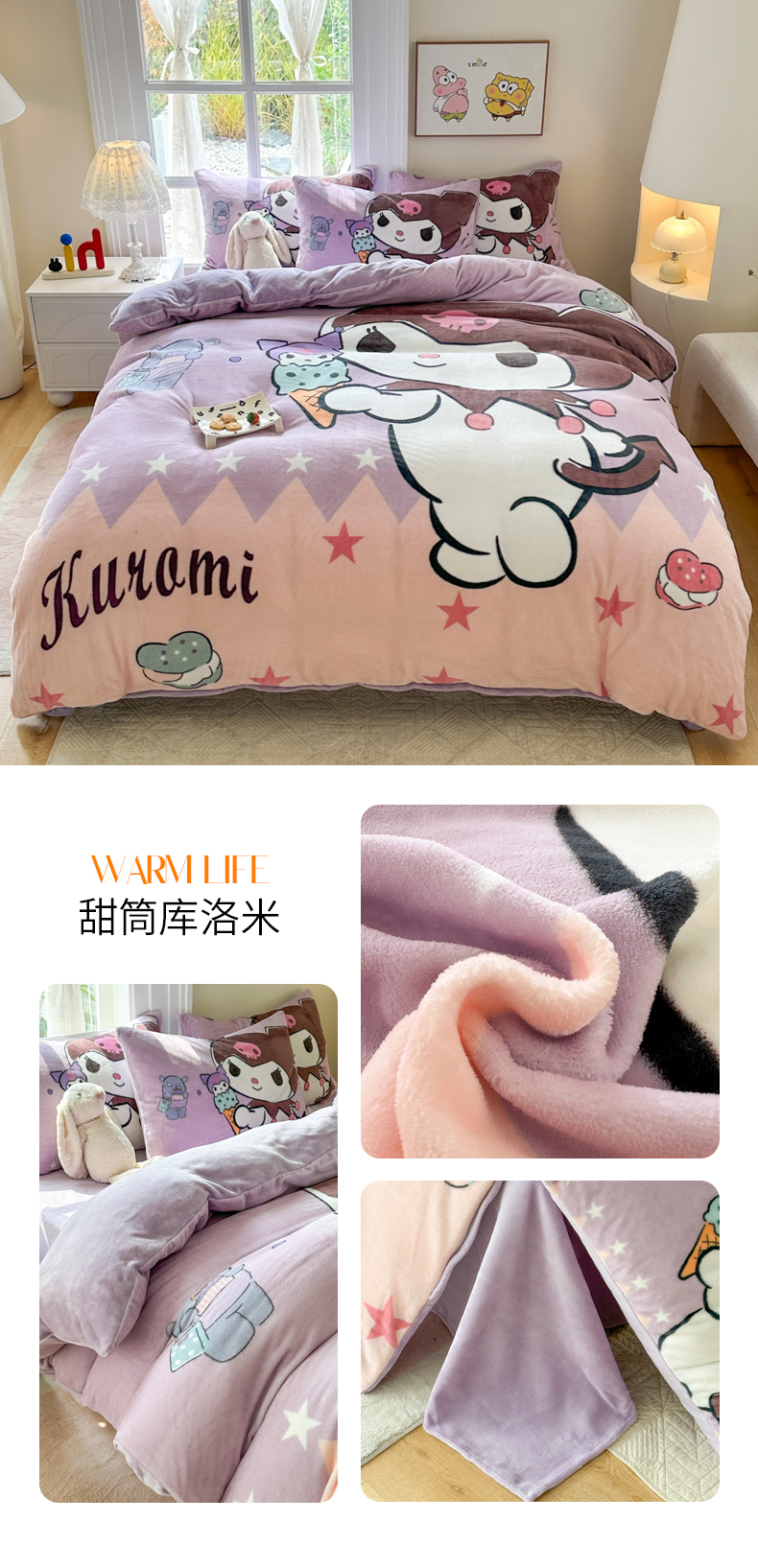 (总)一电 2025新款冬季双面牛奶珊瑚绒床上四件套法兰绒床品加绒被套床单三件套-第三批,公主库洛米,天使库洛米,甜筒库洛米,小兔子,圆点库洛米