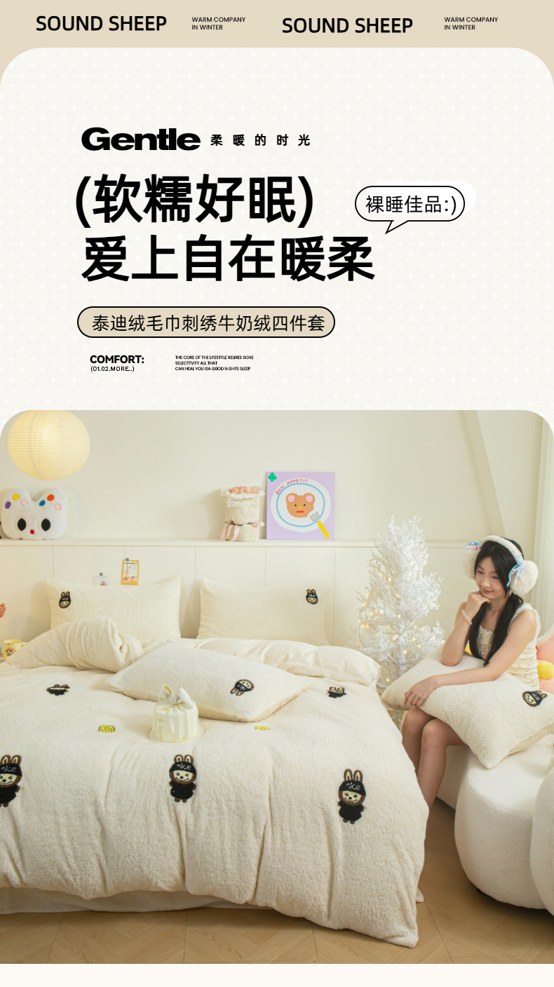 商品名称:(总)庭笙 2025新款高克重泰迪绒毛巾刺绣牛奶绒四件套