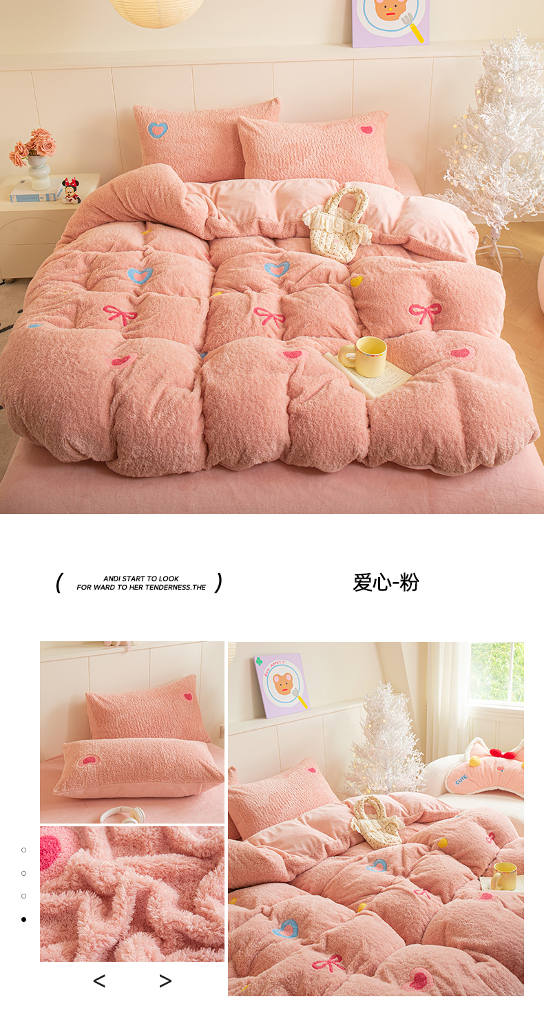 (总)庭笙 2025新款高克重泰迪绒毛巾刺绣牛奶绒四件套,bubu-米白,爱心-粉,爱心-紫,bubu-浅蓝,bubu-奶咖