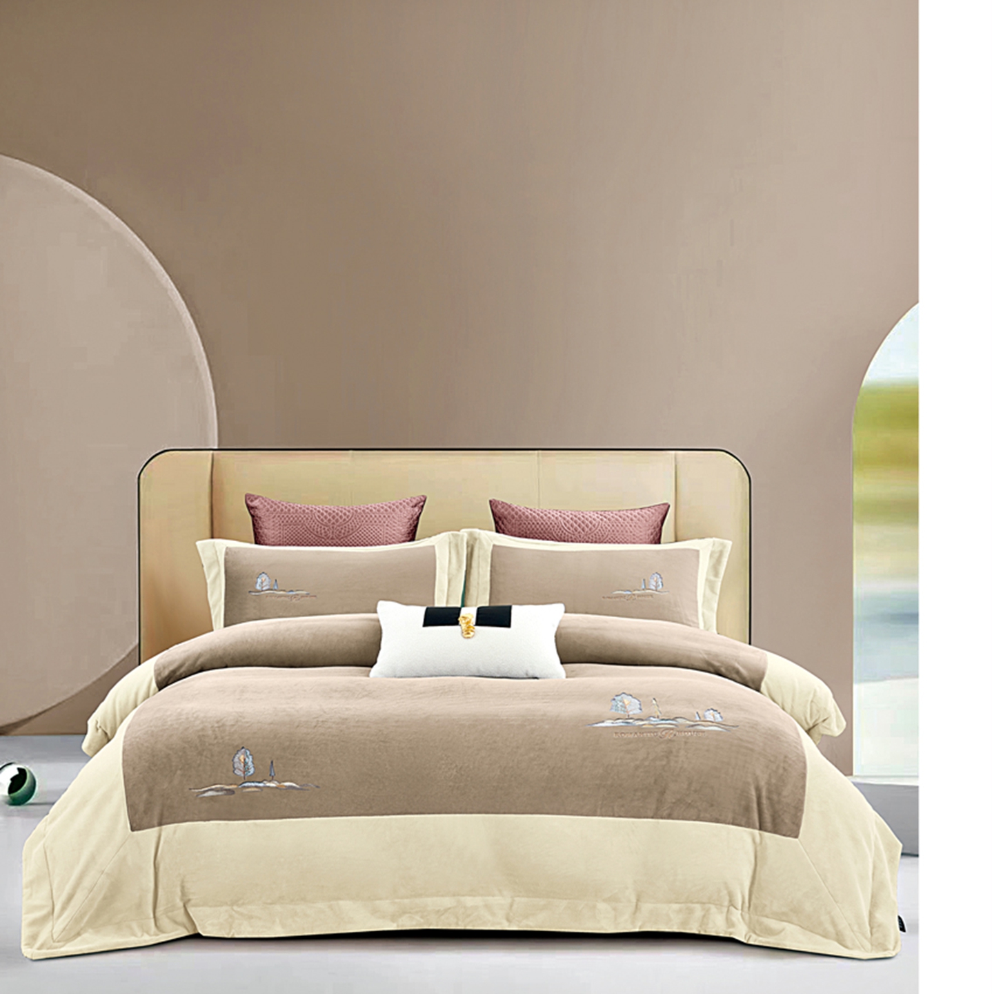 芯丝路枕业 2025新款爱丁堡蚕丝绒四件套 爱丁堡-浅米咖