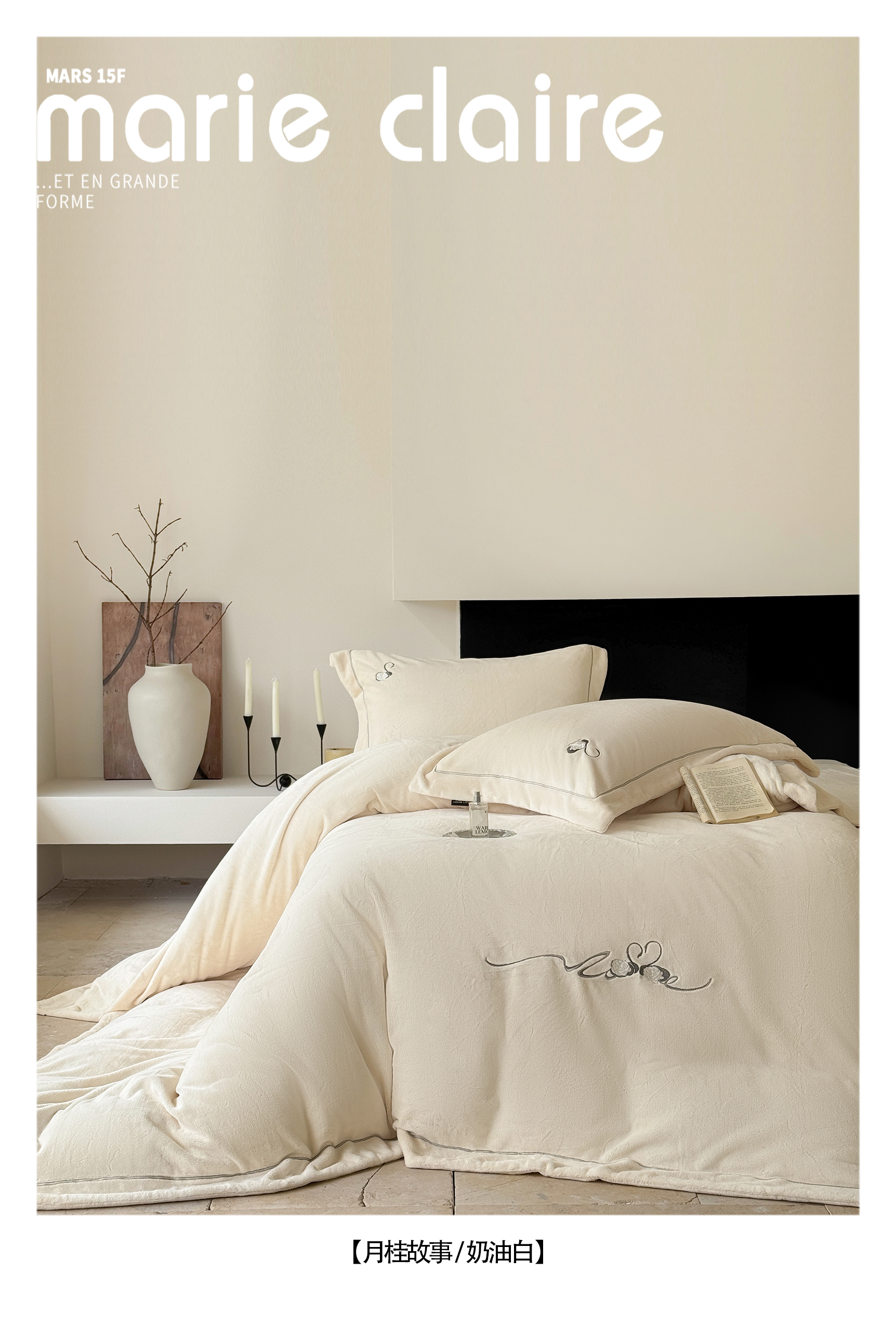 芯丝路枕业 2025新款蚕丝棉四件套-月桂故事系列 奶油白