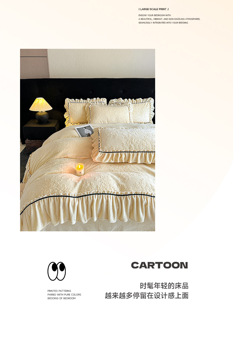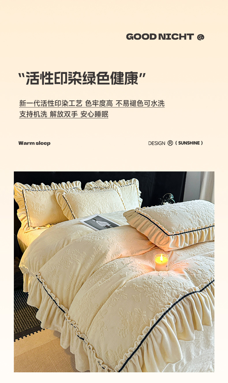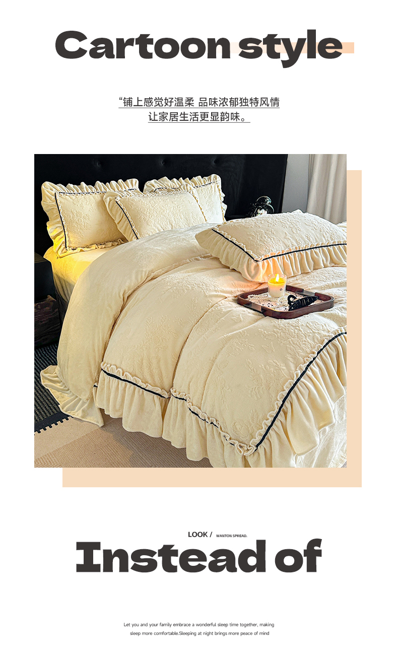 (总)诺梵家纺 2025新款花边款雕花牛奶绒四件套,芊黛-粉,芊黛-紫,芊黛-黄,幸福花-绿,芊黛-绿,幸福花-黄,芊黛-米白,幸福花-米白,幸福花-紫