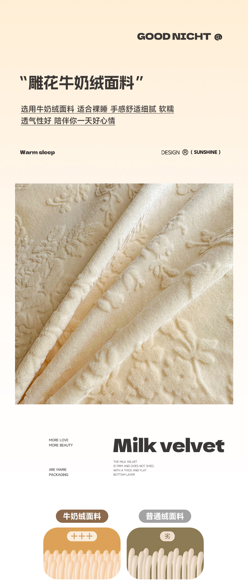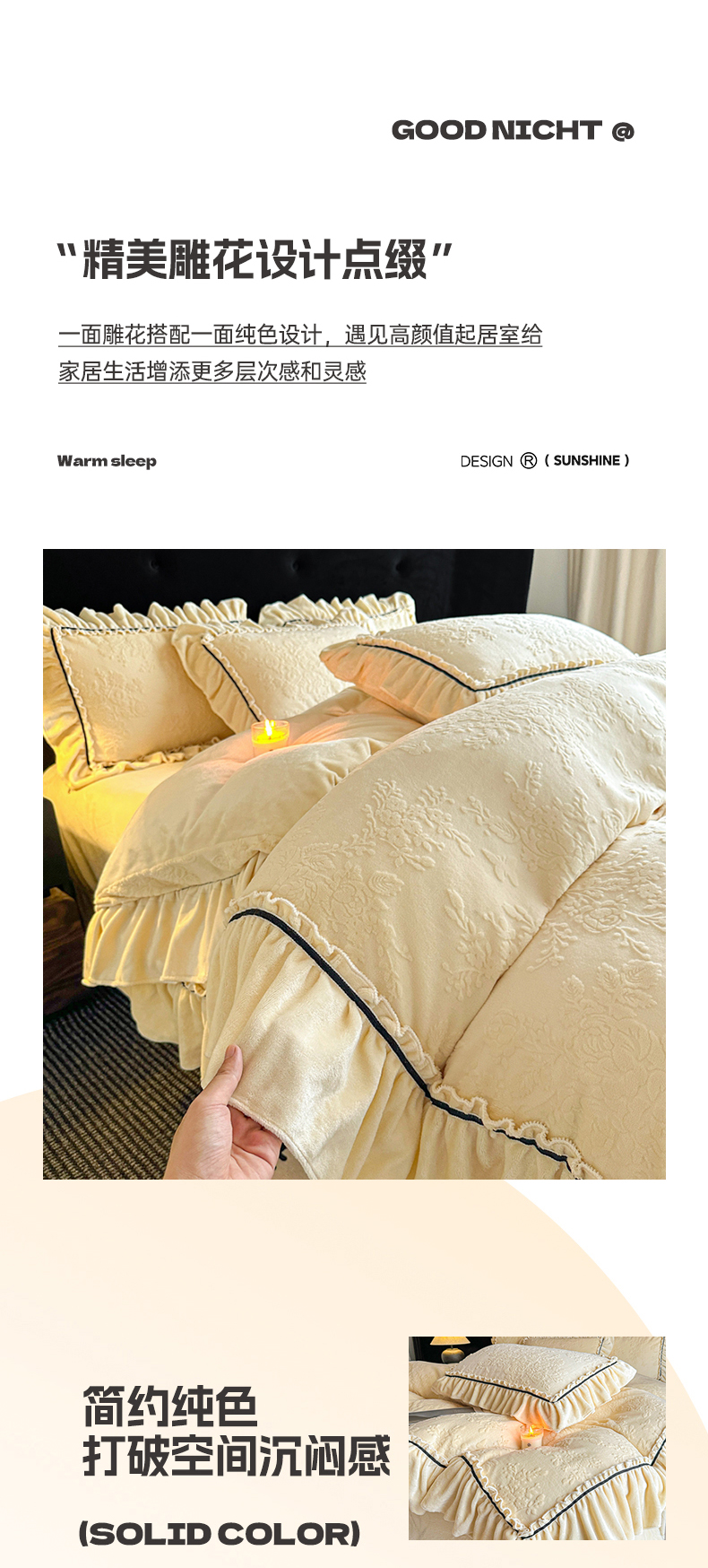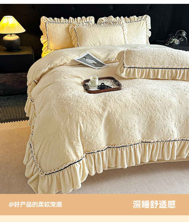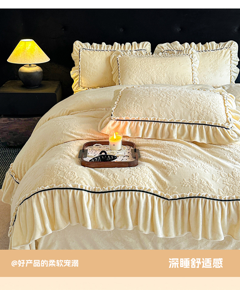 商品名称:诺梵家纺 2025新款花边款雕花牛奶绒四件套 芊黛-黄