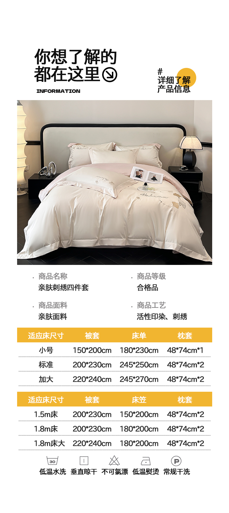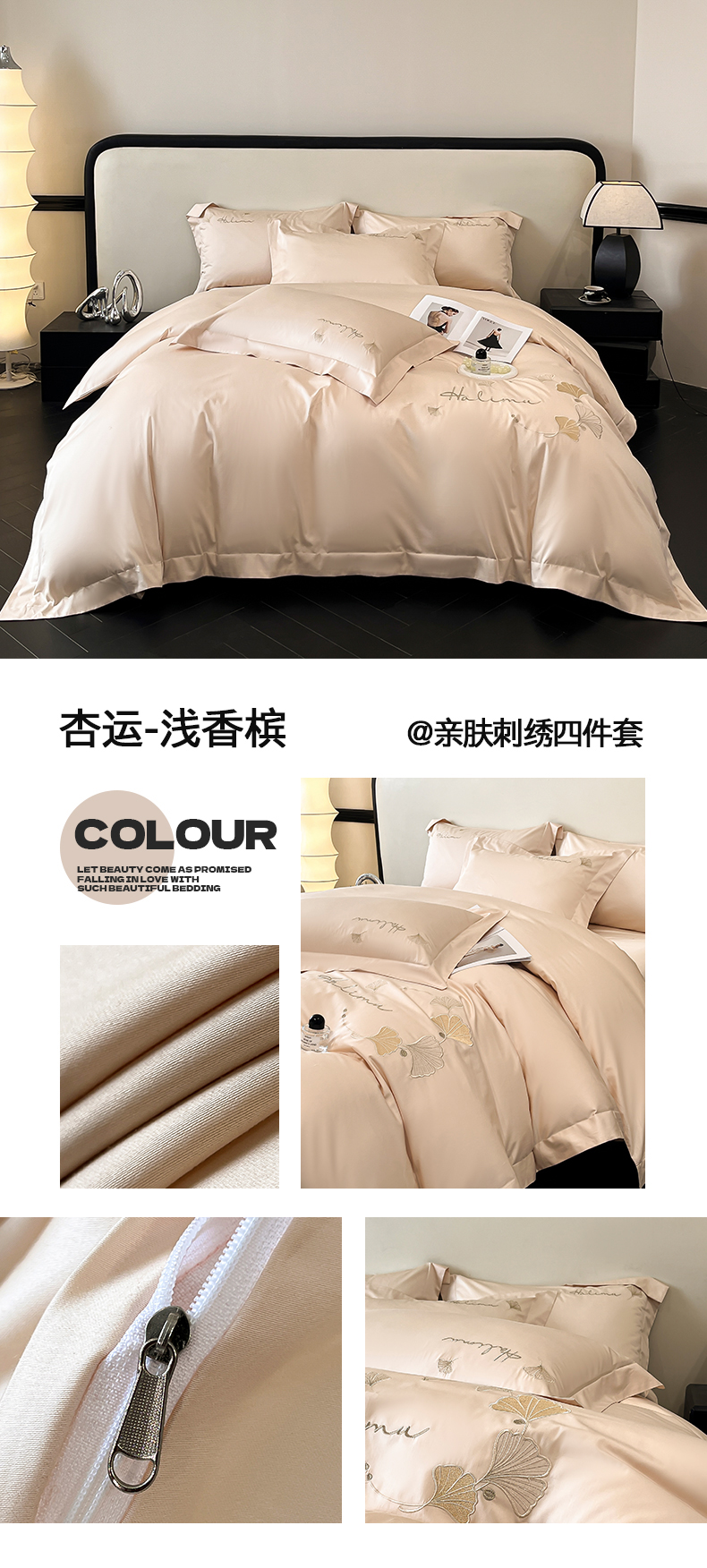 商品名称:(总)置顶家纺 2025新款亲肤刺绣四件套-杏运