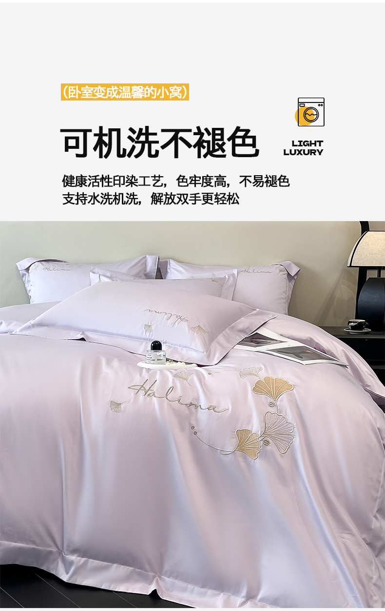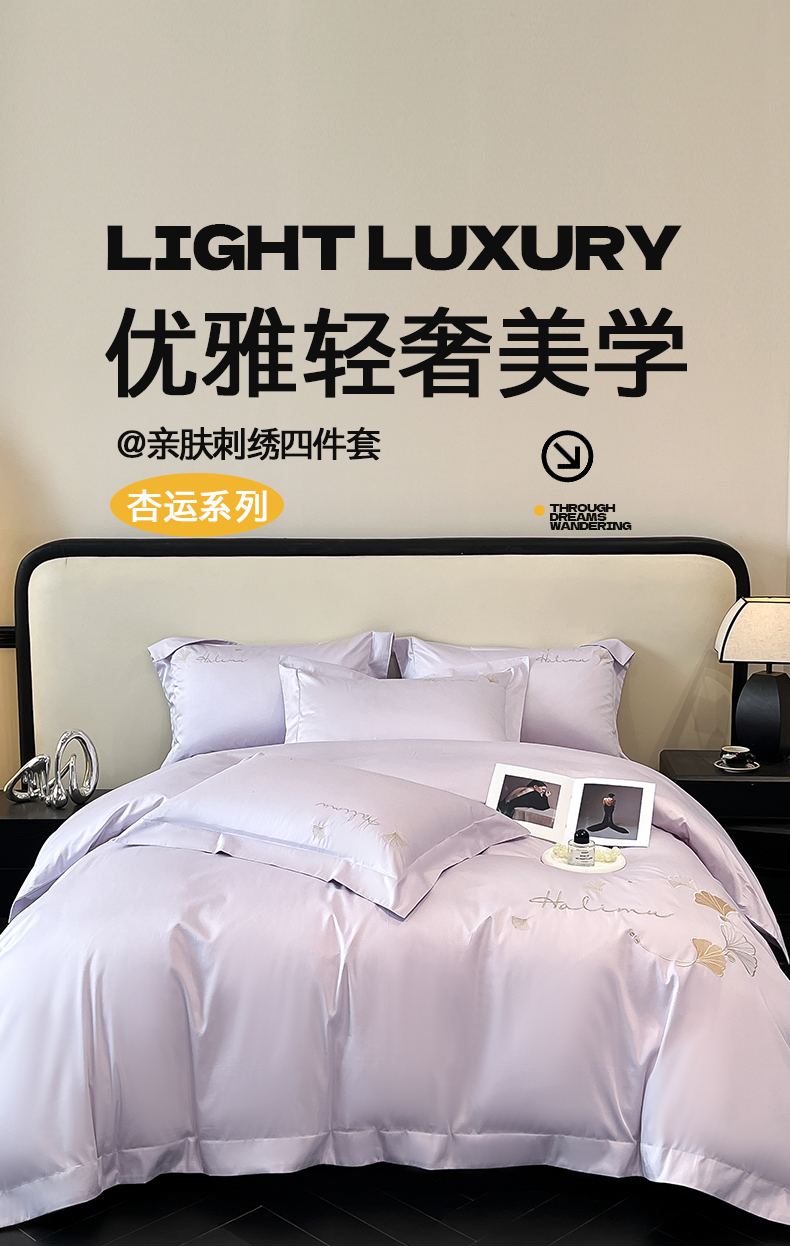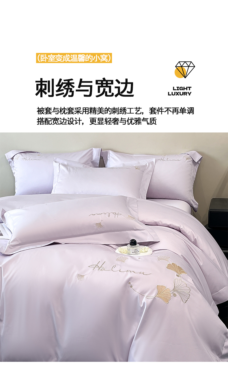 当前位置: 91家纺网 > 商品网购 > 床品套件 > 四件套 > 全棉普通四件套 > 置顶家纺 2025新款亲肤刺绣四件套-杏运 杏运-香芋紫