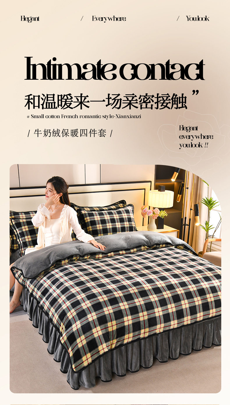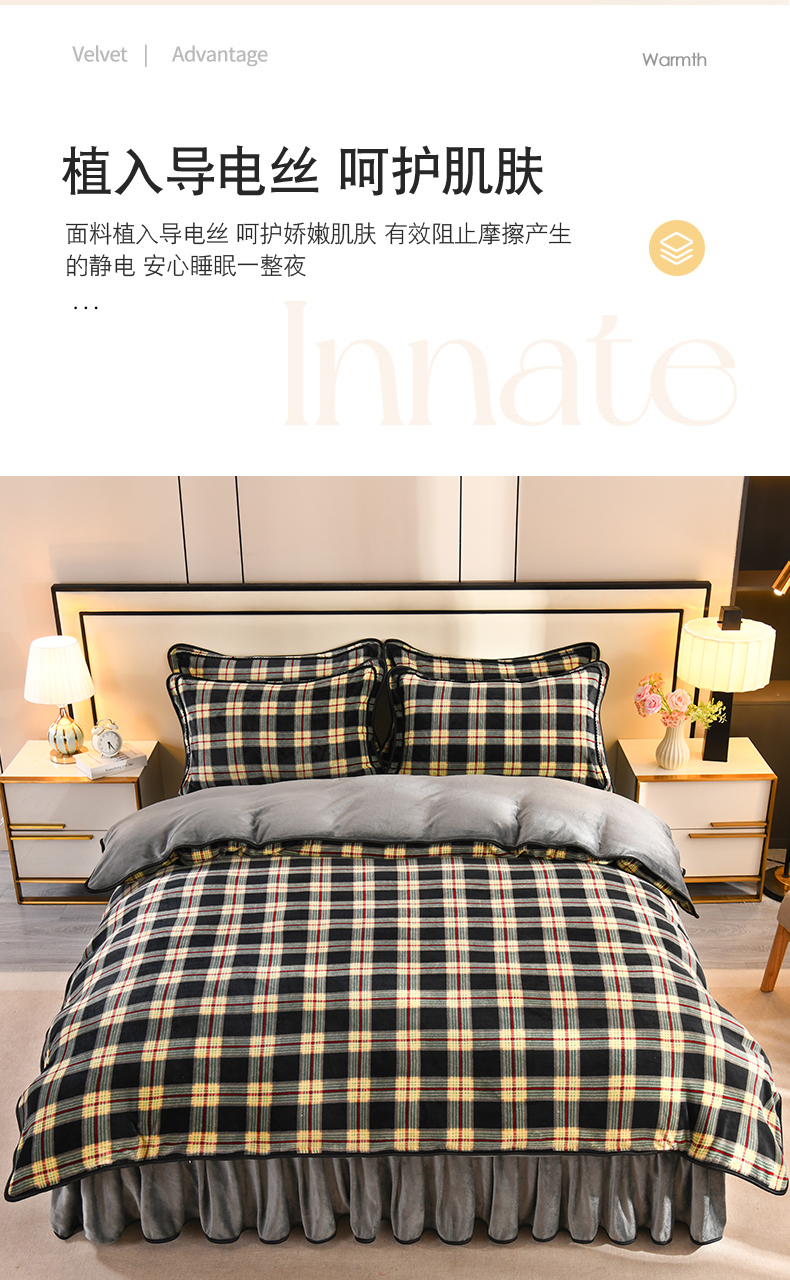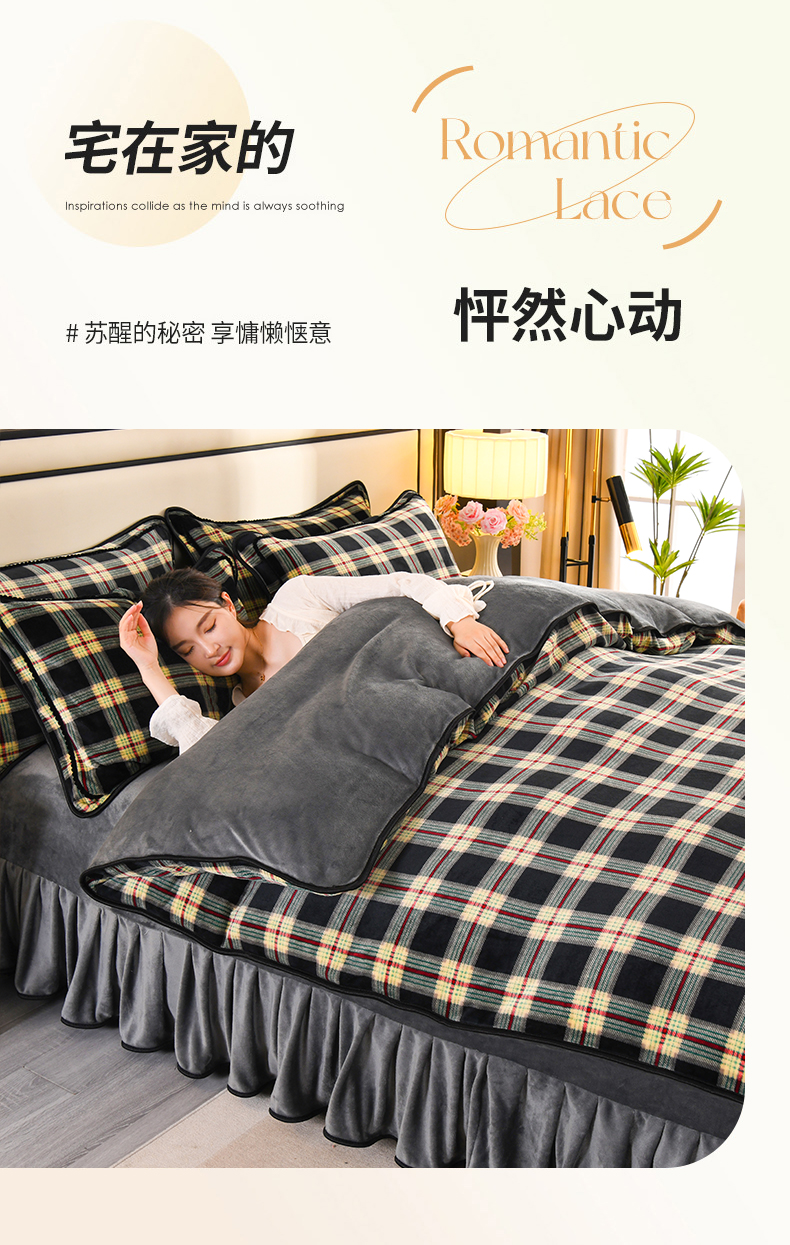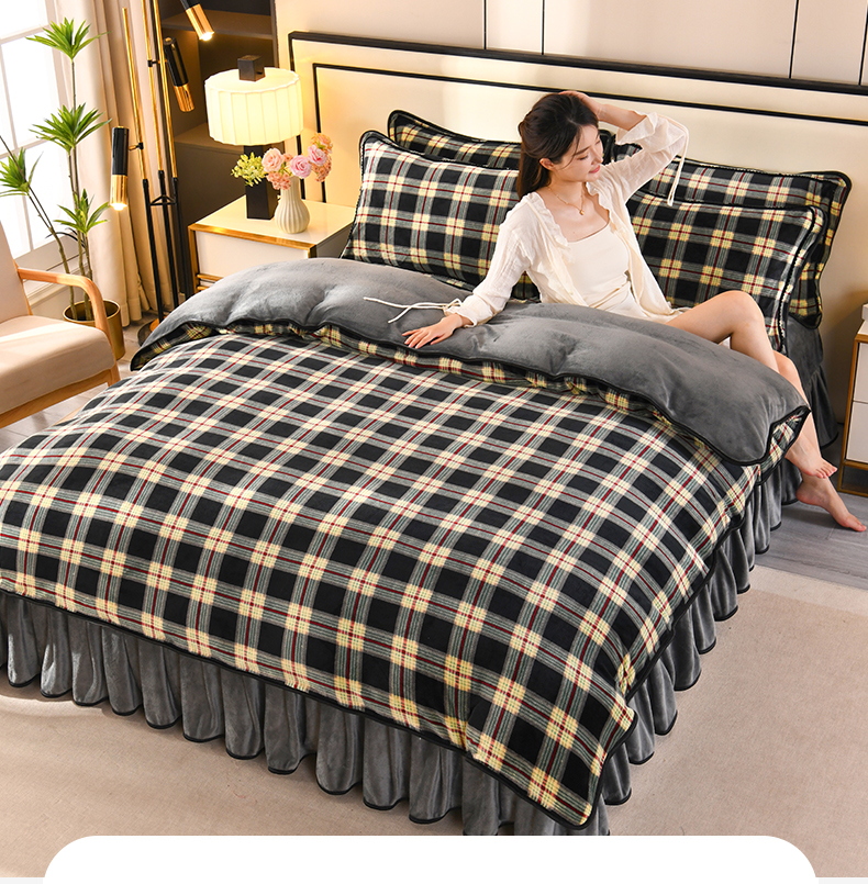 商品名称:2025新款高克重8斤金貂绒牛奶绒四件套 格缦