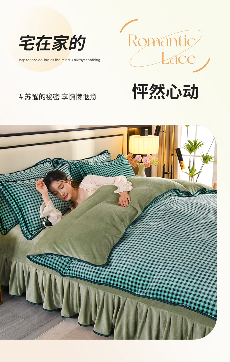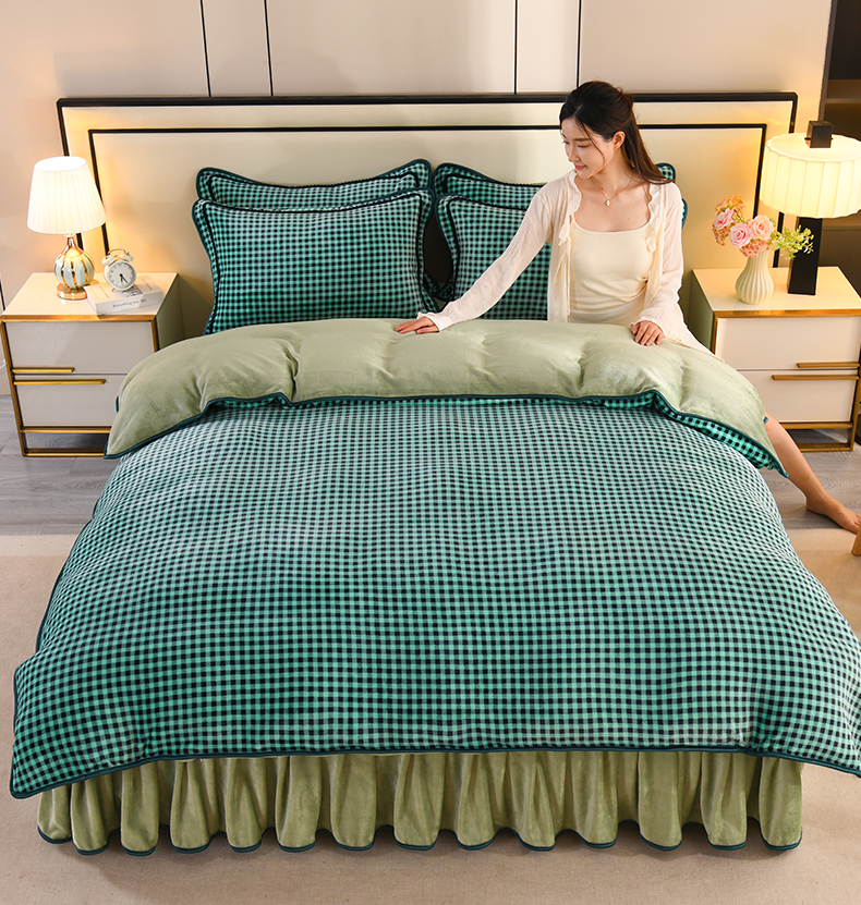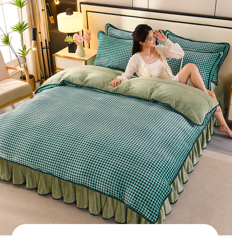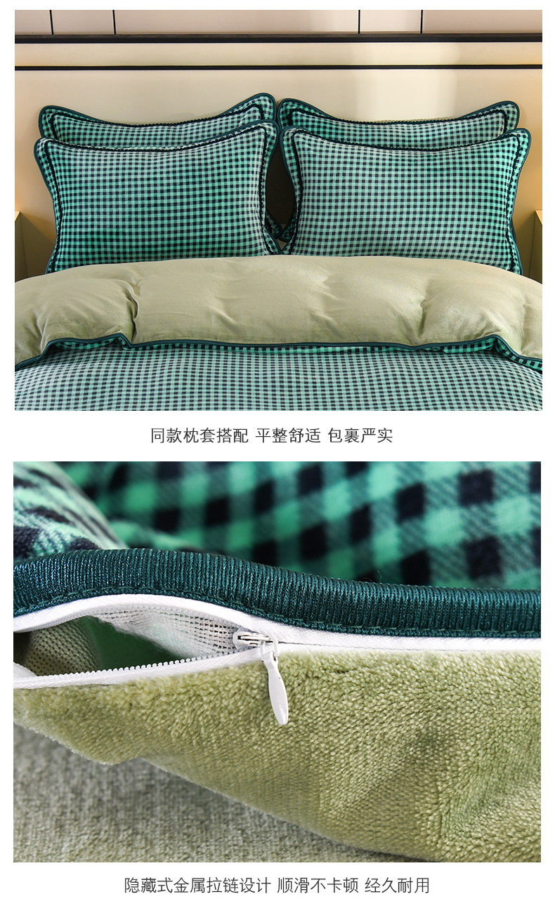 商品名称:2025新款高克重8斤金貂绒牛奶绒四件套 小格-绿