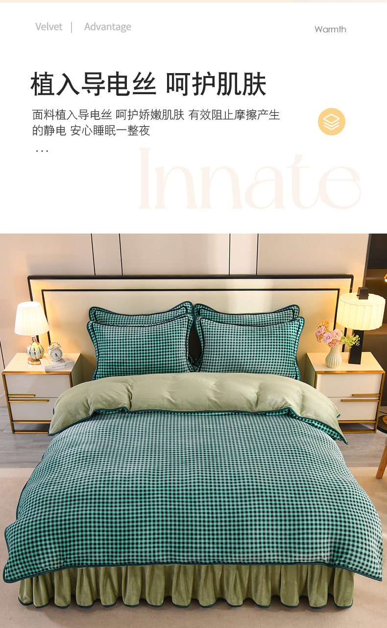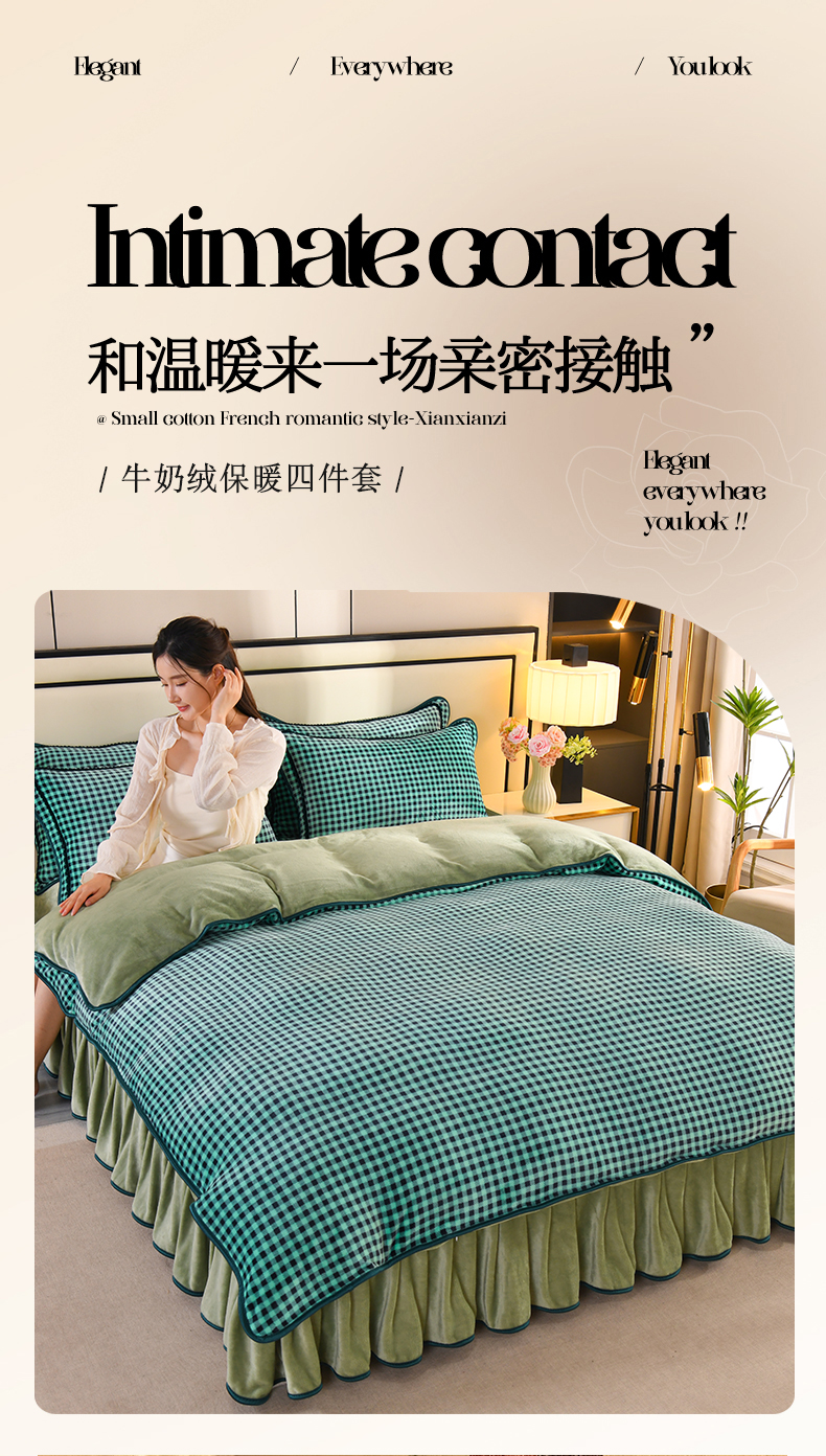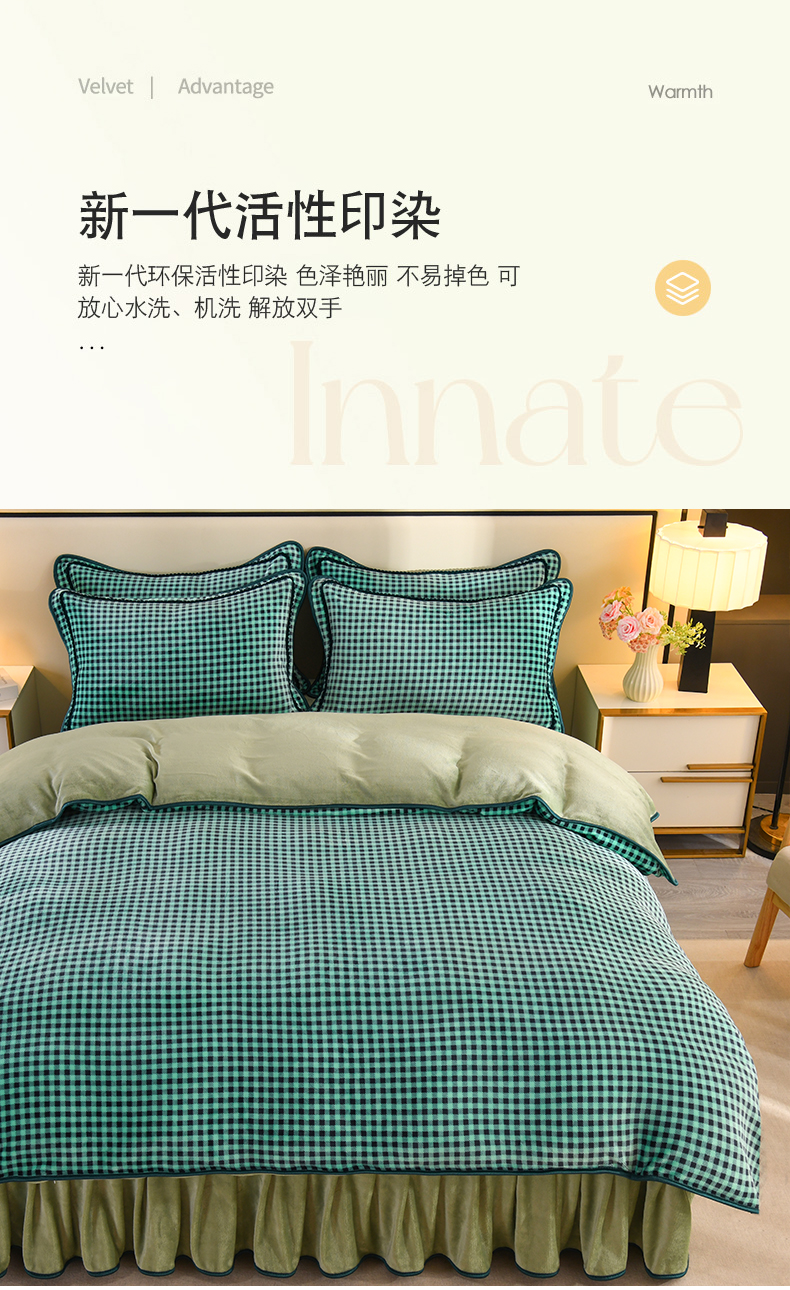 商品名称:2025新款高克重8斤金貂绒牛奶绒四件套 小格-绿