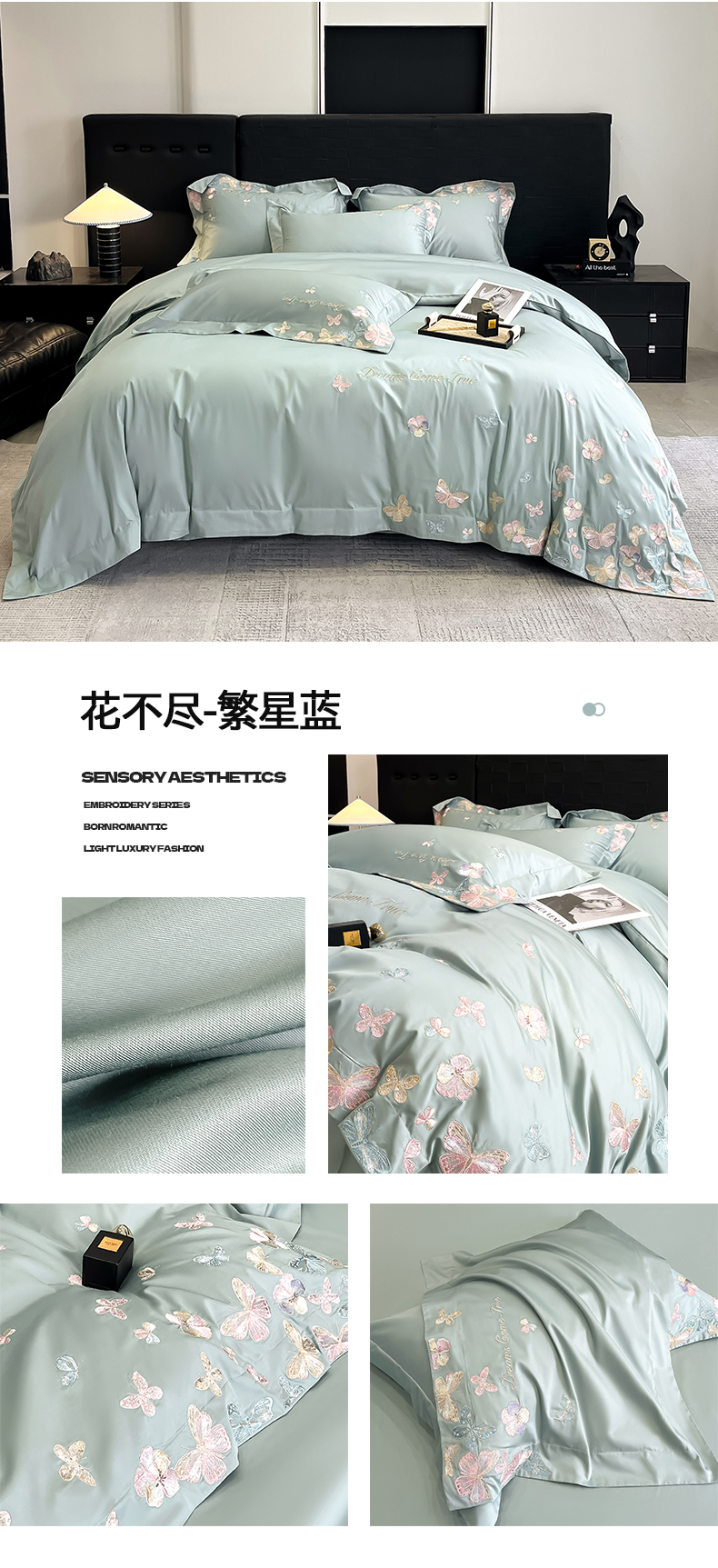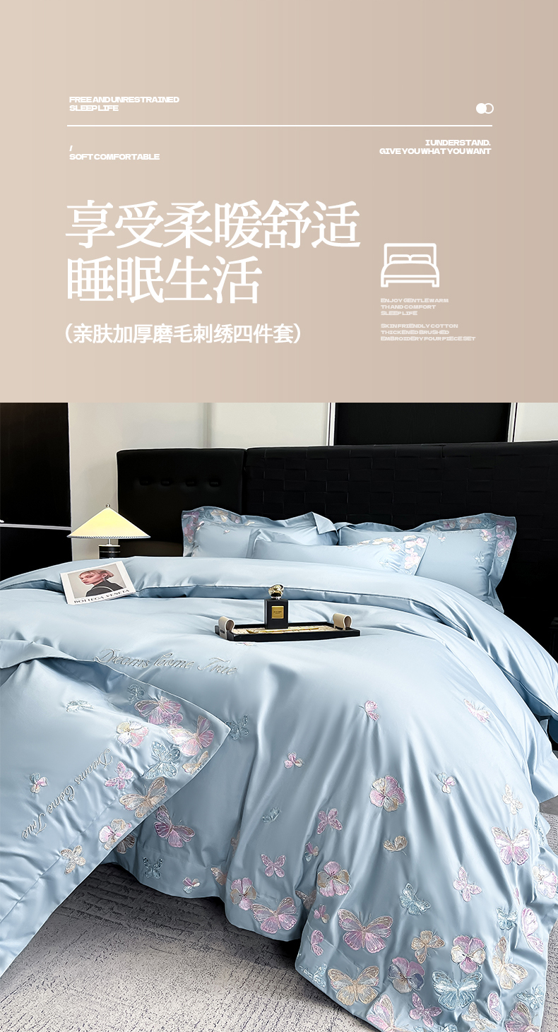 当前位置: 91家纺网 > 商品网购 > 床品套件 > 四件套 > 磨毛活性四件套 > 置顶家纺 2025新款亲肤加厚磨毛刺绣四件套-花不尽 花不尽-天蓝