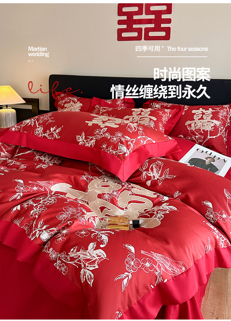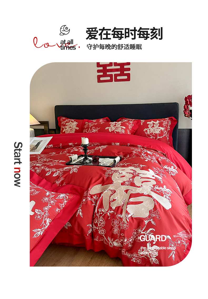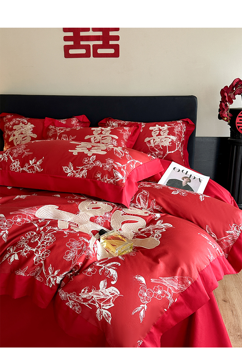 (总)置顶家纺 2025新款新中式棚拍亲肤棉婚庆大红刺绣系列四件套,花开富贵-大红,龙凤新禧-金大红,龙凤盈禧-大红,龙姿凤彩-大红,盛世婚礼-大红,十全十美-大红,喜结连理-大红,喜礼-大红,囍缘-大红,幸福婚礼-大红,迎喜龙凤-大红,永结同心-大红