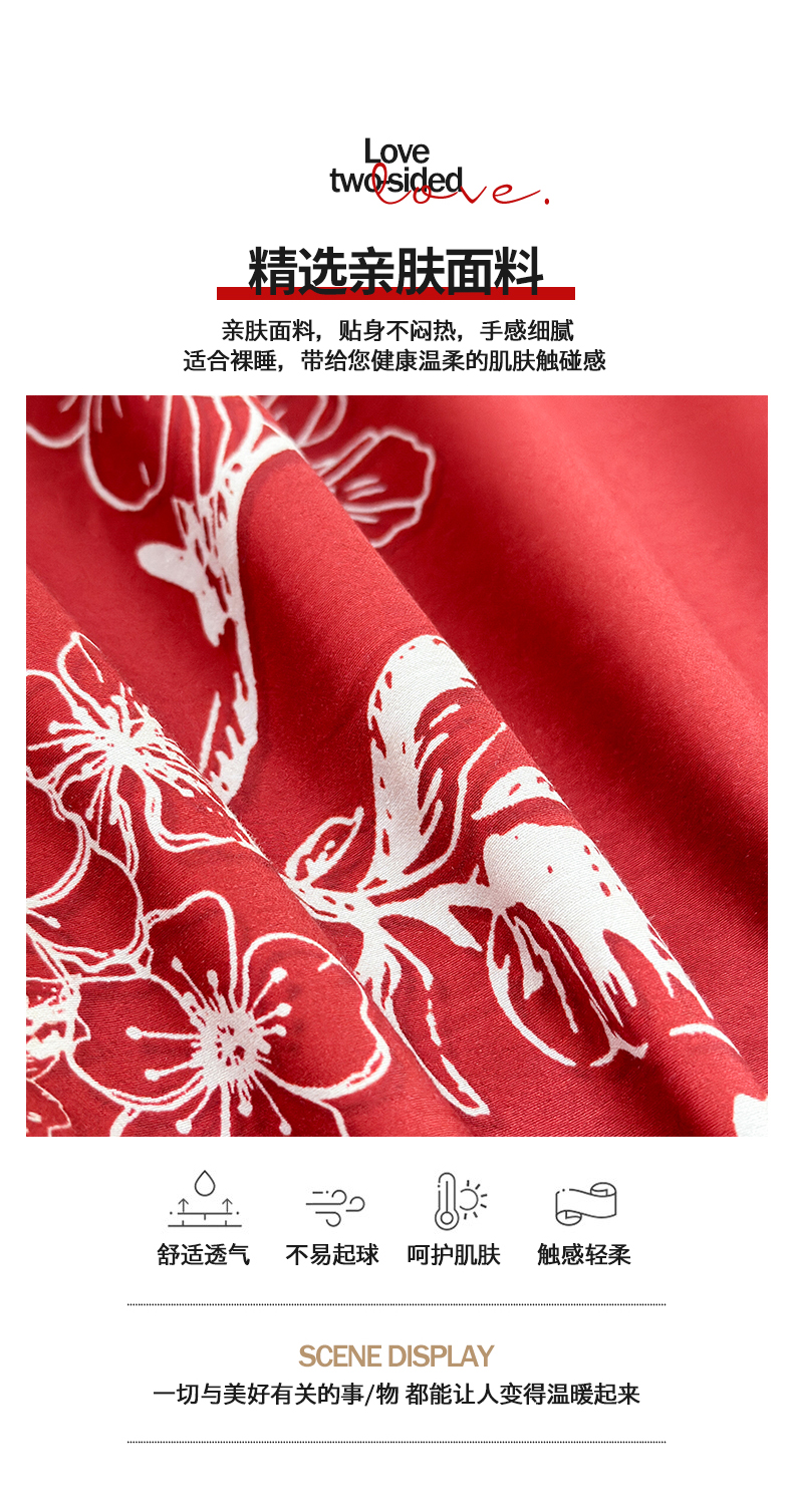 (总)置顶家纺 2025新款数码印花亲肤婚庆绣花四件套-灵犀,灵犀-大红