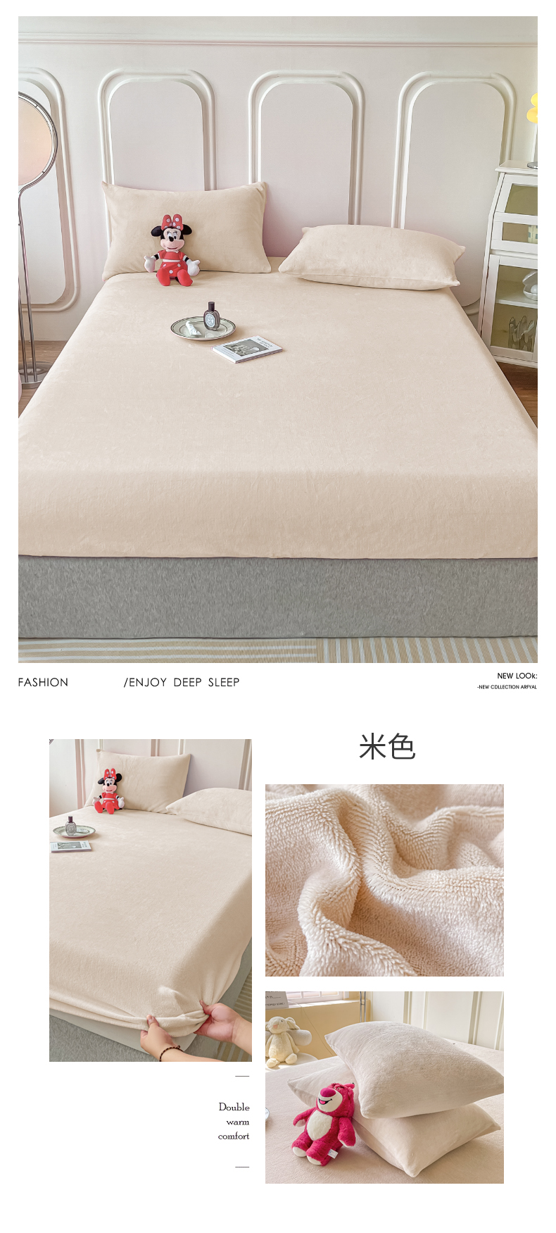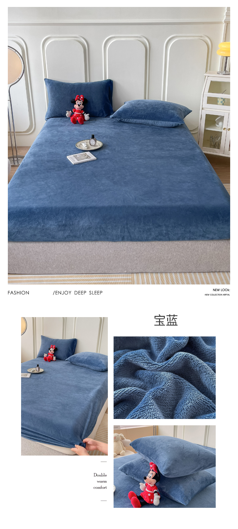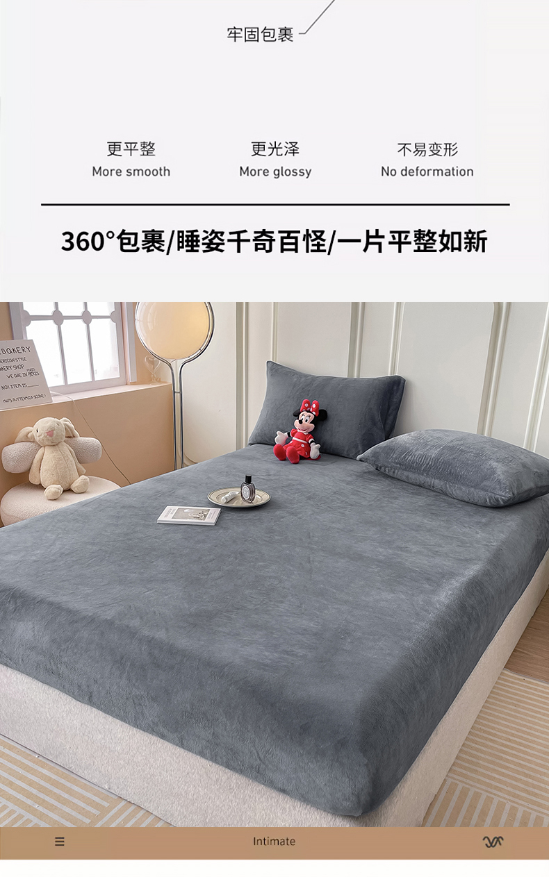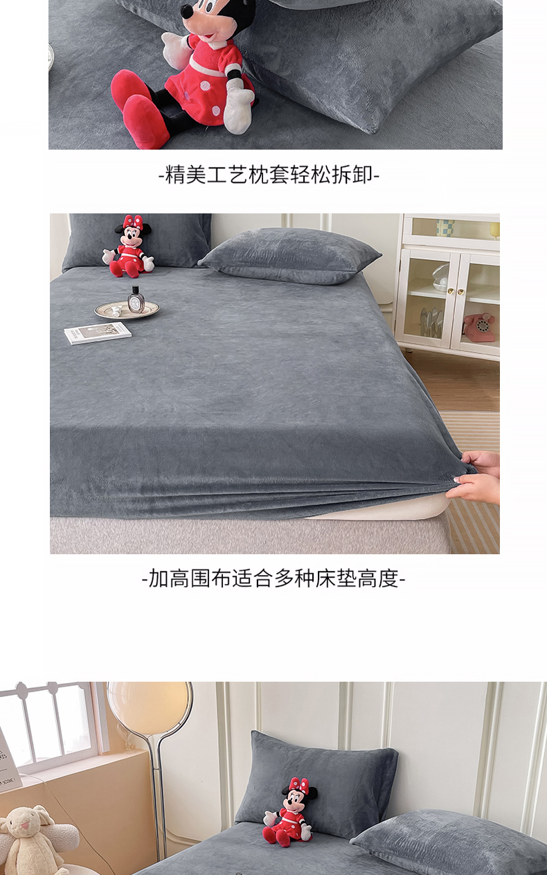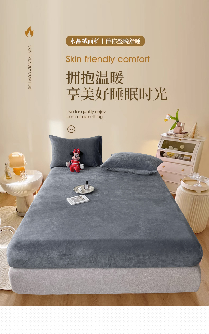 (总)莎臣豹 2025新款保暖牛奶绒加厚水晶绒纯色床笠可配三件套,水晶绒床笠宝蓝,水晶绒床笠公主粉,水晶绒床笠米色,水晶绒床笠时尚灰