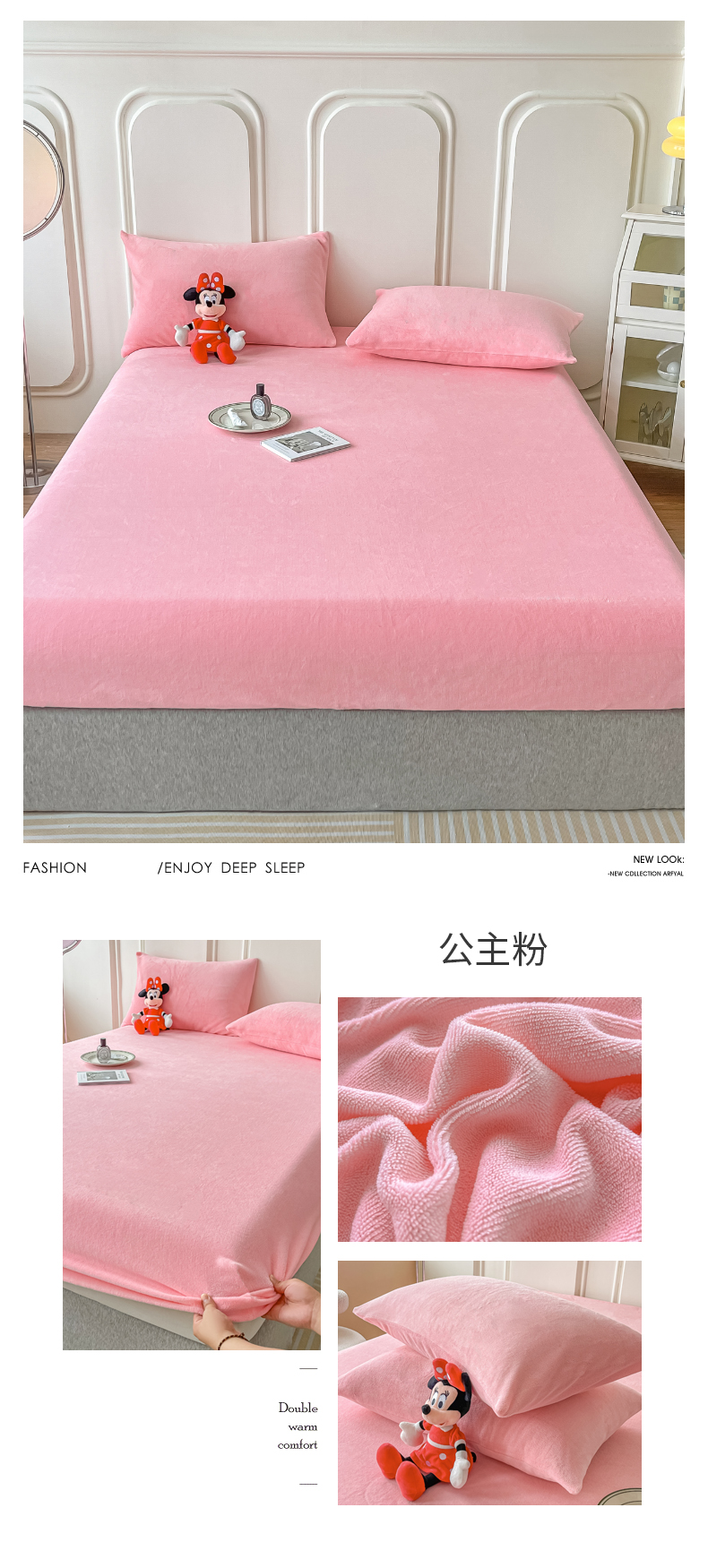 • 91家纺网 家纺一手货源 找家纺 莎臣豹 2025新款保暖牛奶绒加厚水晶绒纯色床笠可配三件套 水晶绒床笠公主粉
