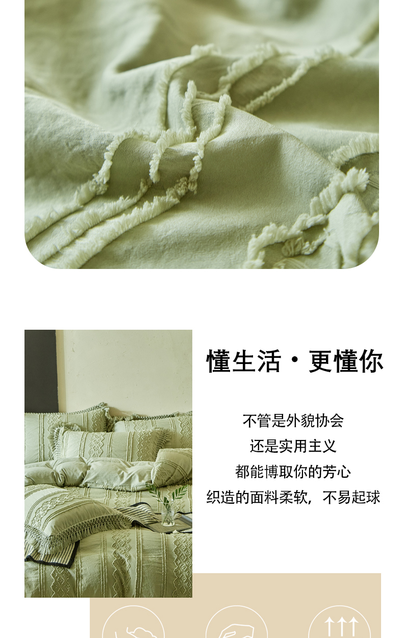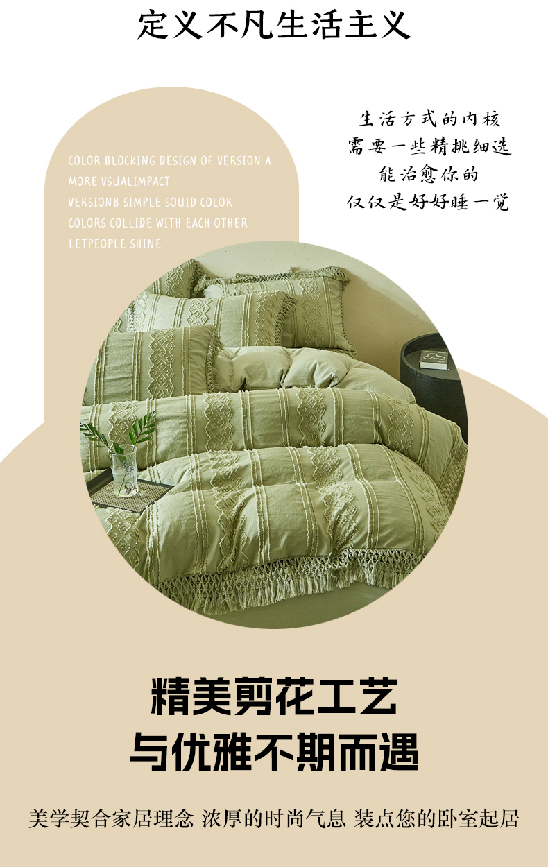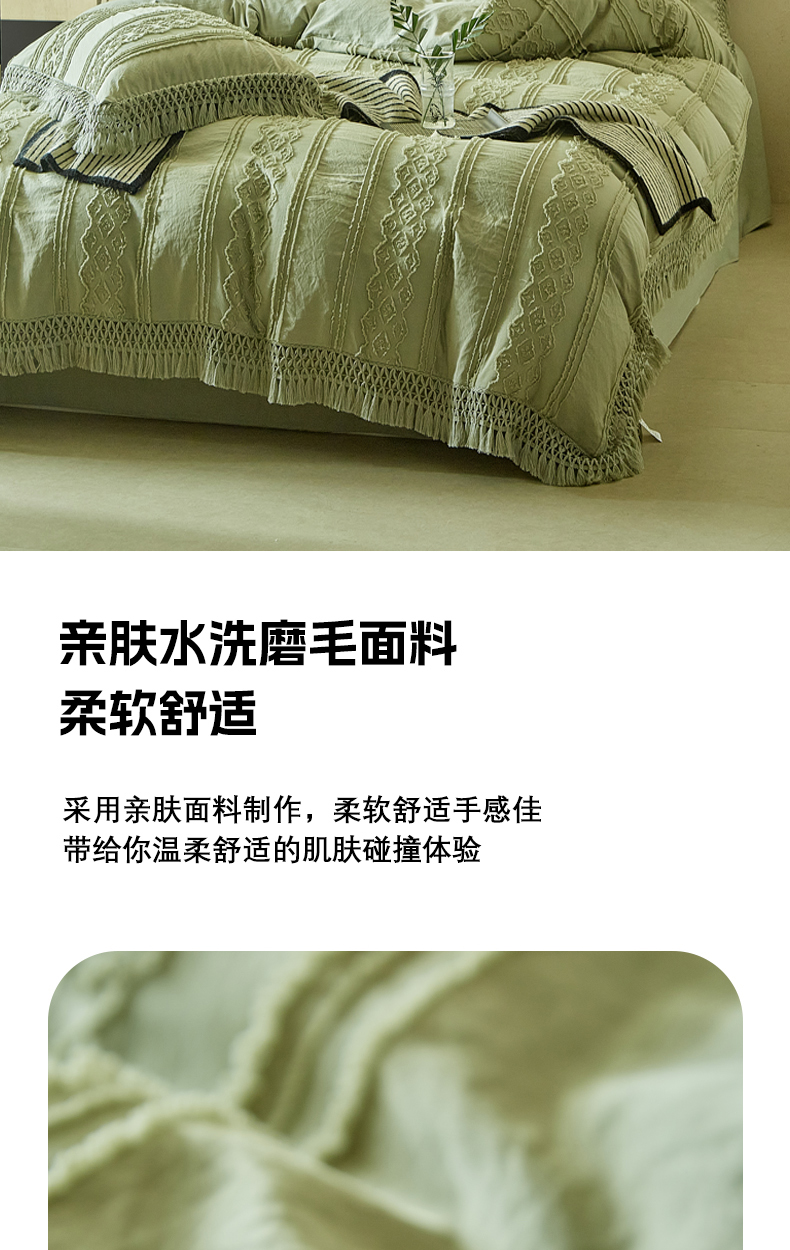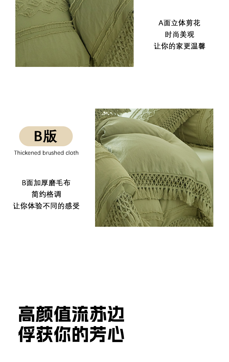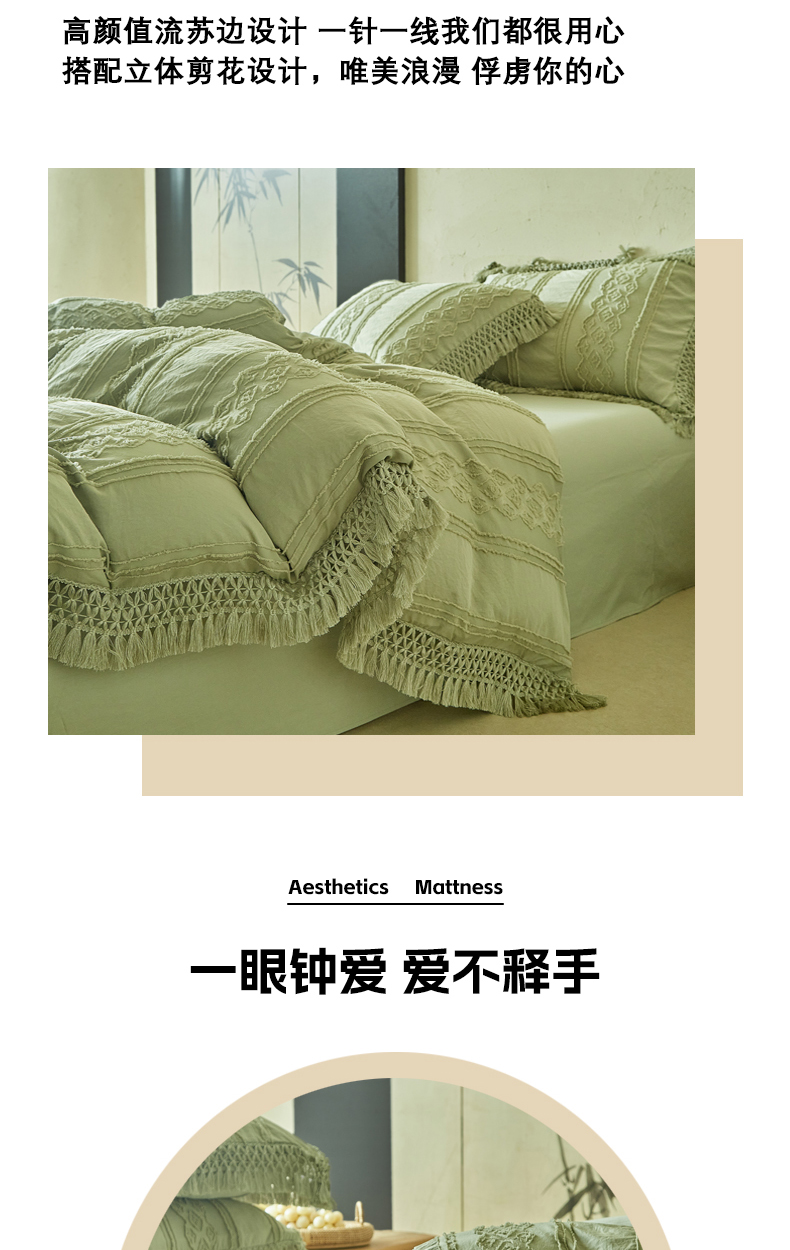当前位置: 91家纺网 > 商品网购 > 床品套件 > 四件套 > 其它四件套 > 缘生活 2025新款立体剪花流苏四件套 四季通用-新增花型 剪花巴洛克 流苏+抹茶绿