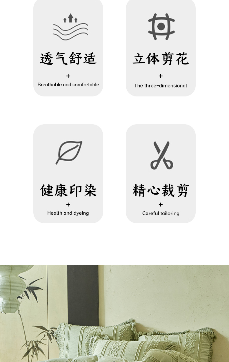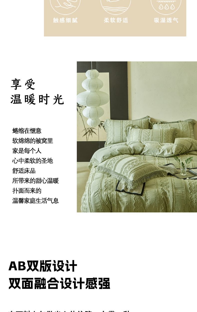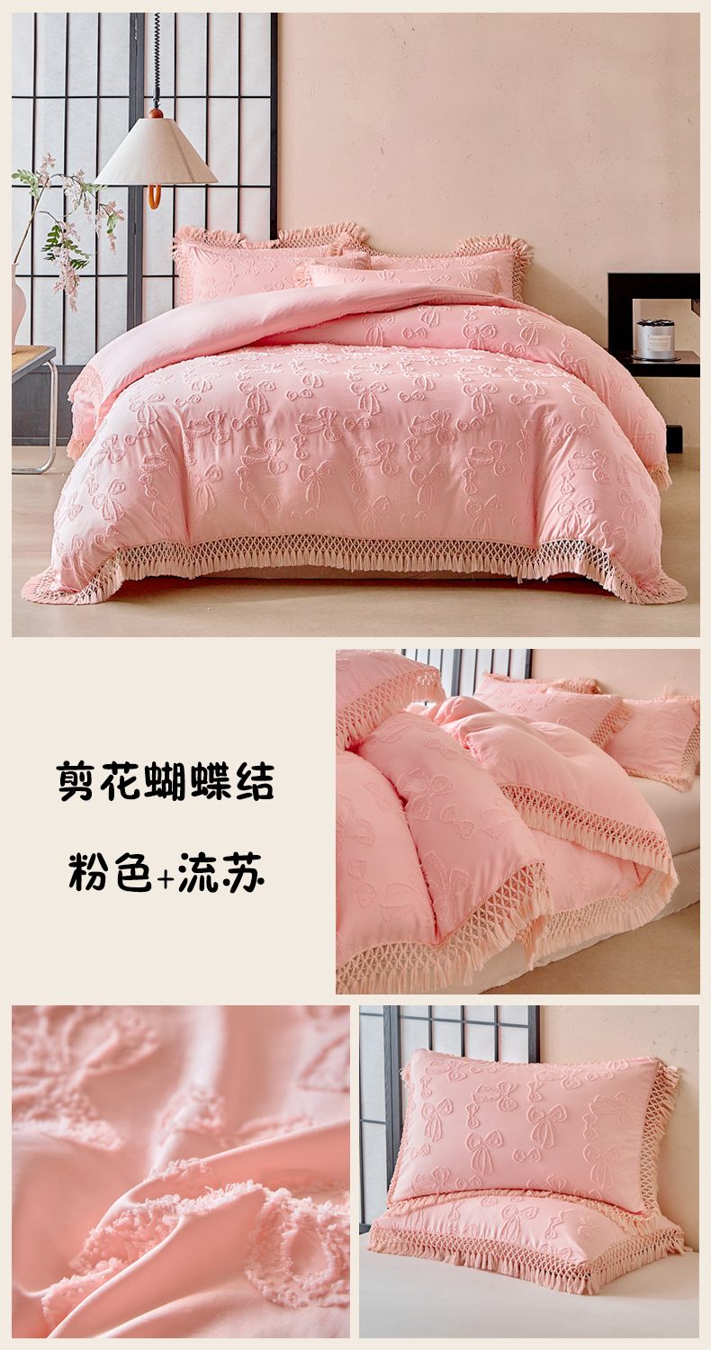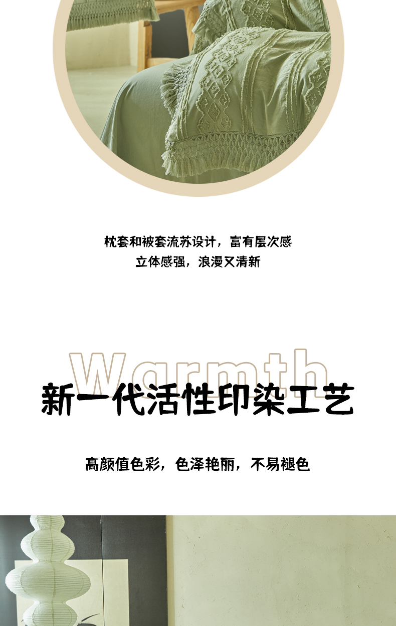 当前位置: 91家纺网 > 商品网购 > 床品套件 > 四件套 > 其它四件套 > 缘生活 2025新款立体剪花流苏四件套 四季通用-新增花型 剪花巴洛克 流苏+抹茶绿
