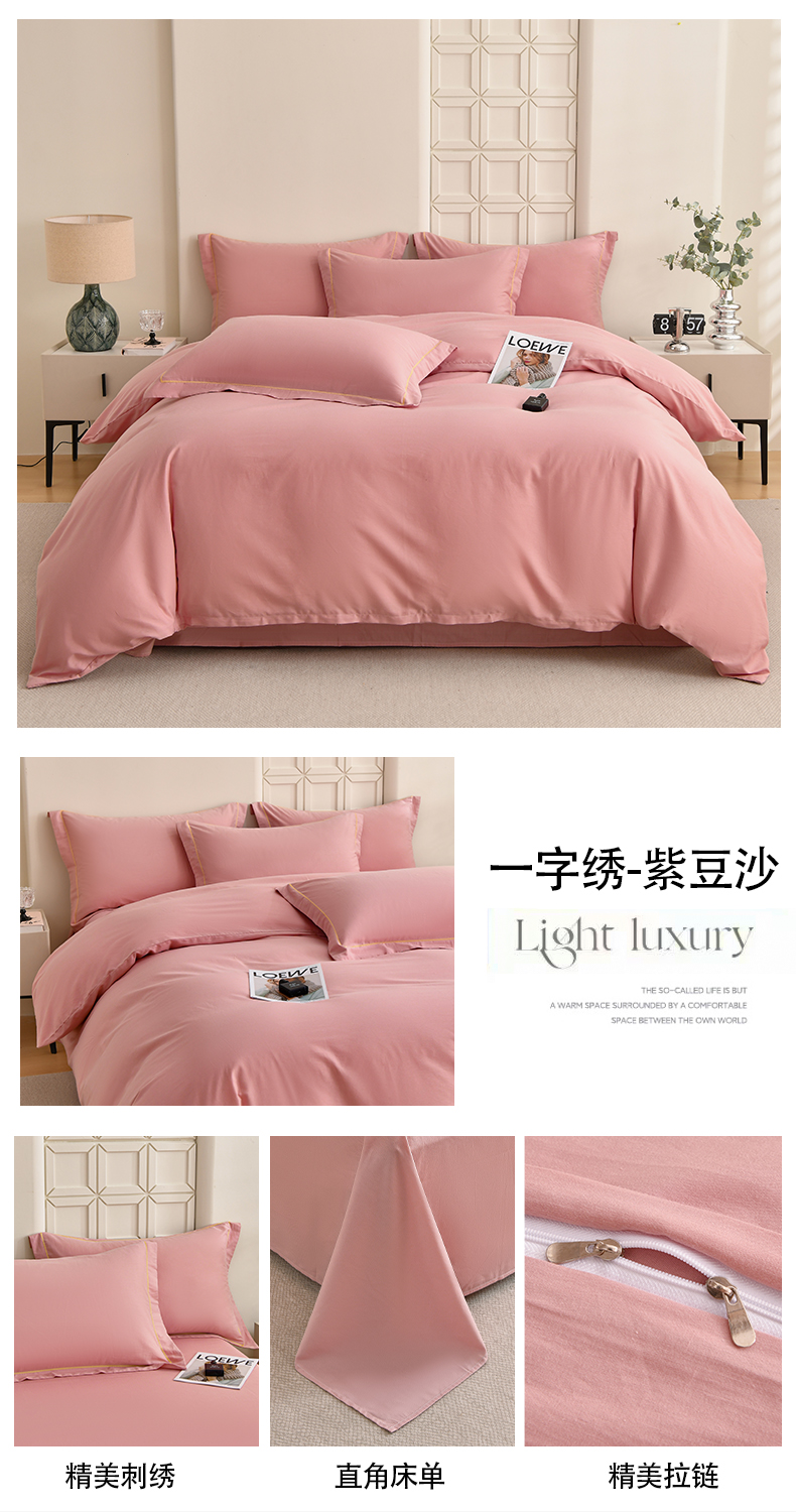 当前位置: 91家纺网 > 商品网购 > 床品套件 > 四件套 > 全棉普通四件套 > 宇彬家纺 2026新款A类13374全棉纯棉母婴级纯色四件套贡缎新疆长绒轻奢缩水足可定做 一字绣-奶油粉