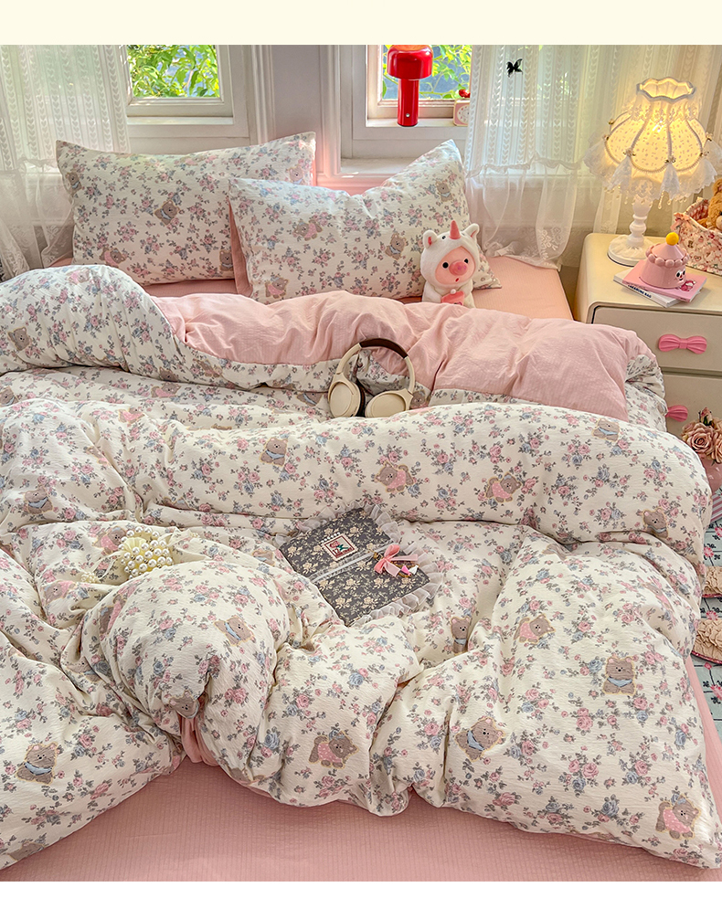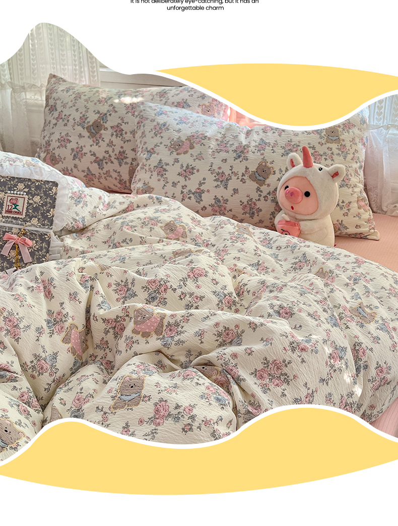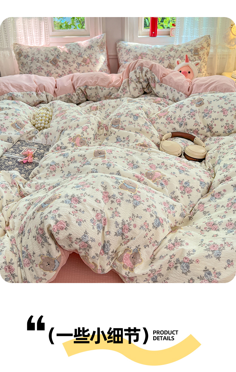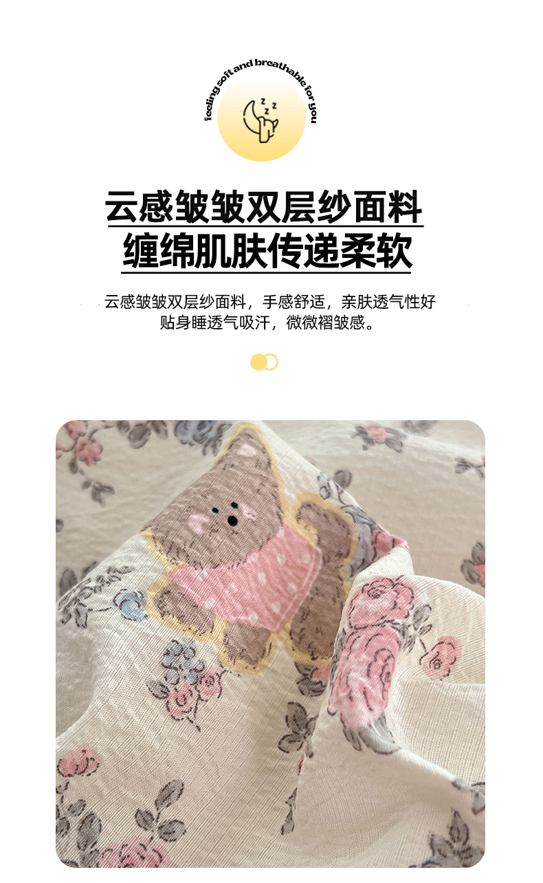 当前位置: 91家纺网 > 商品网购 > 床品套件 > 四件套 > 双层纱四件套 > 优佳优品 2025新款高克重云感双层纱印花四件套 熊花私语