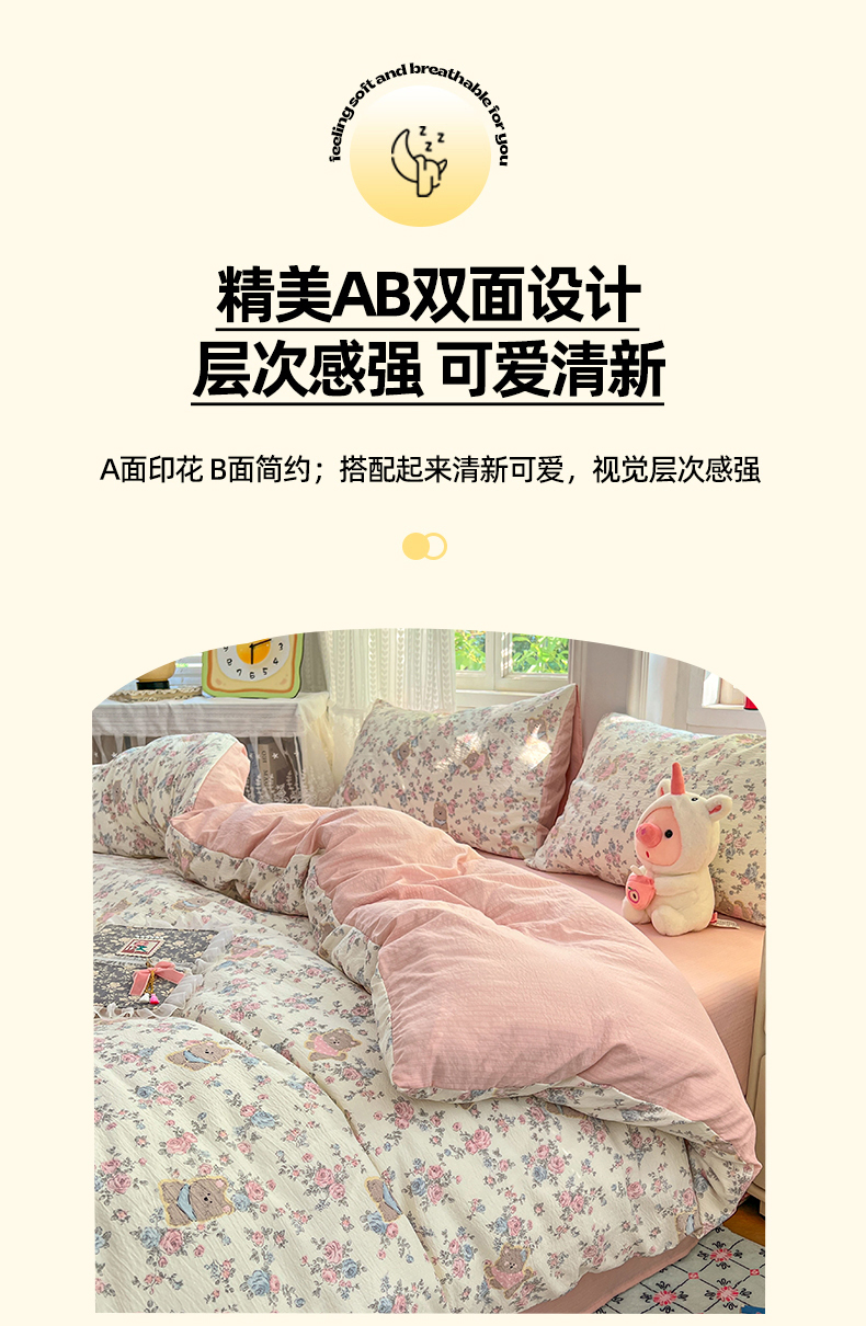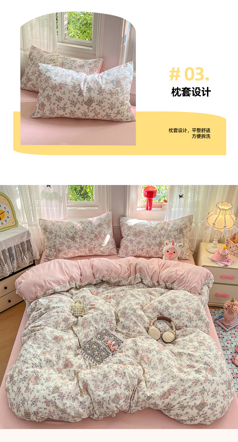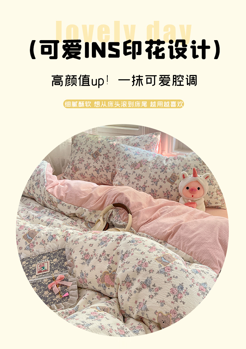 当前位置: 91家纺网 > 商品网购 > 床品套件 > 四件套 > 双层纱四件套 > 优佳优品 2025新款高克重云感双层纱印花四件套 熊花私语