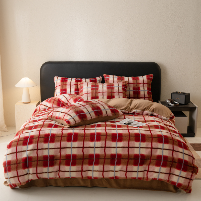 商品名称:梦纤绒 2025新款兔毛绒四件套 幸福花园