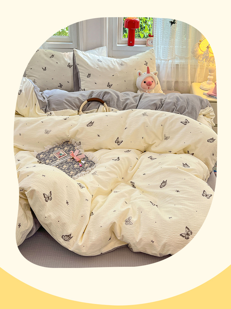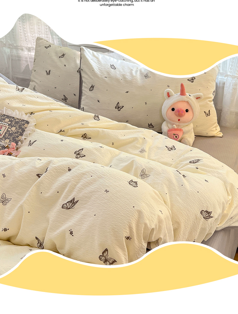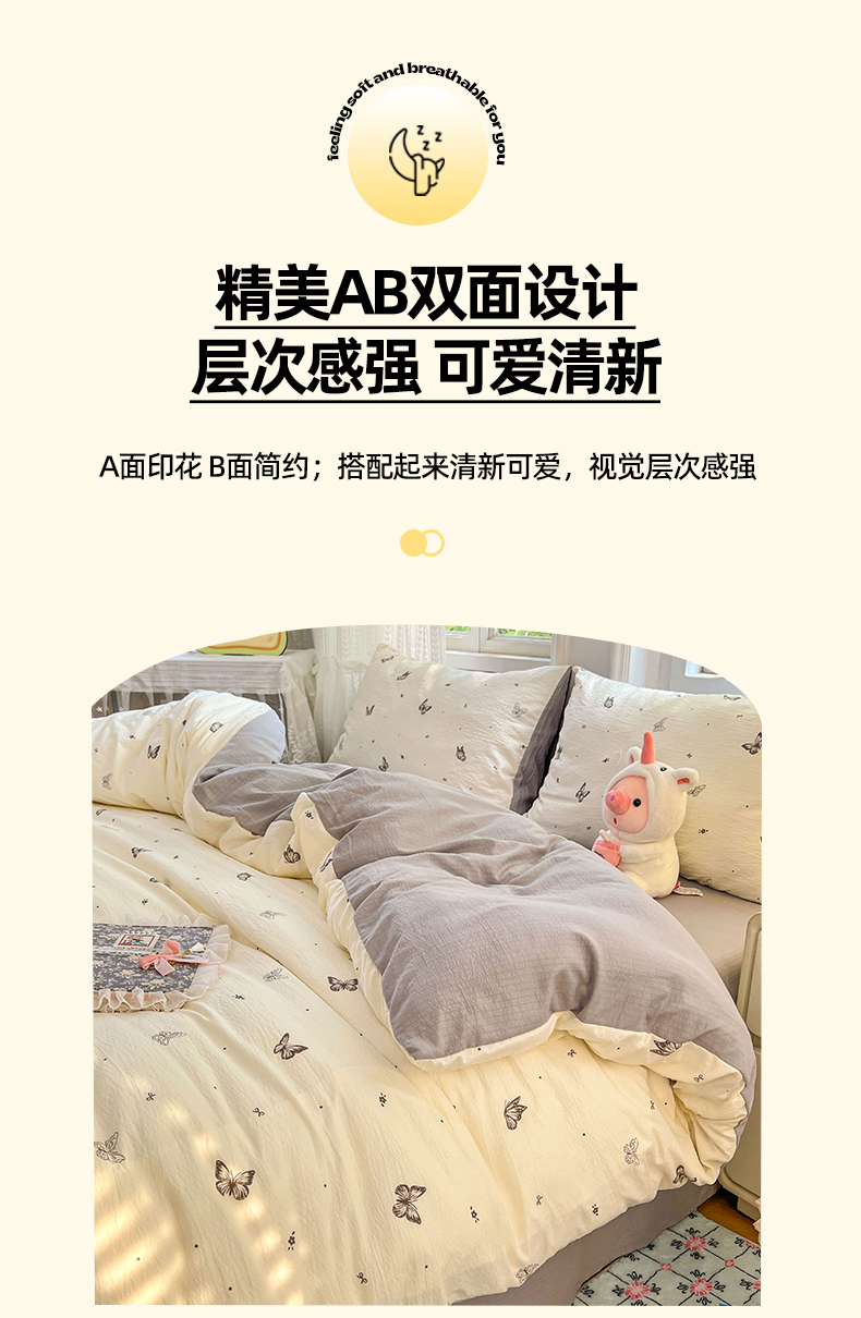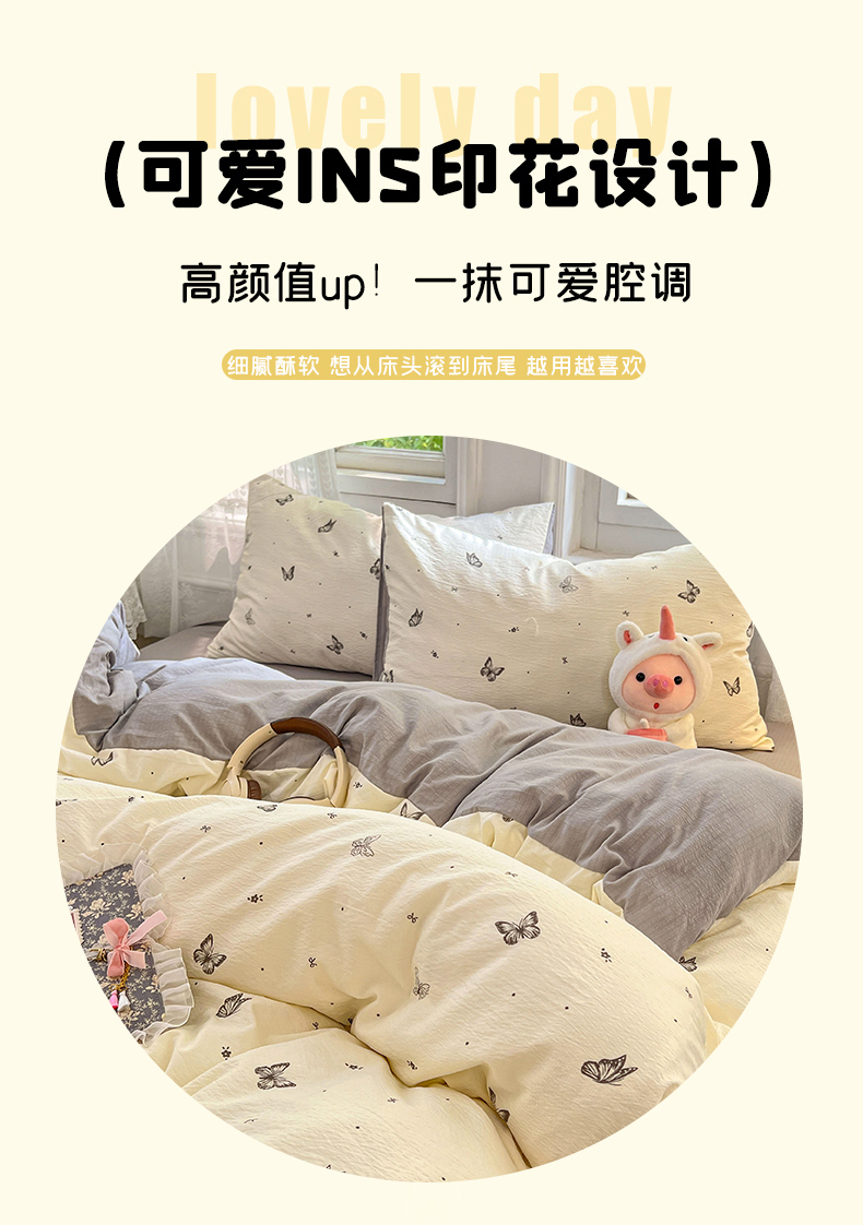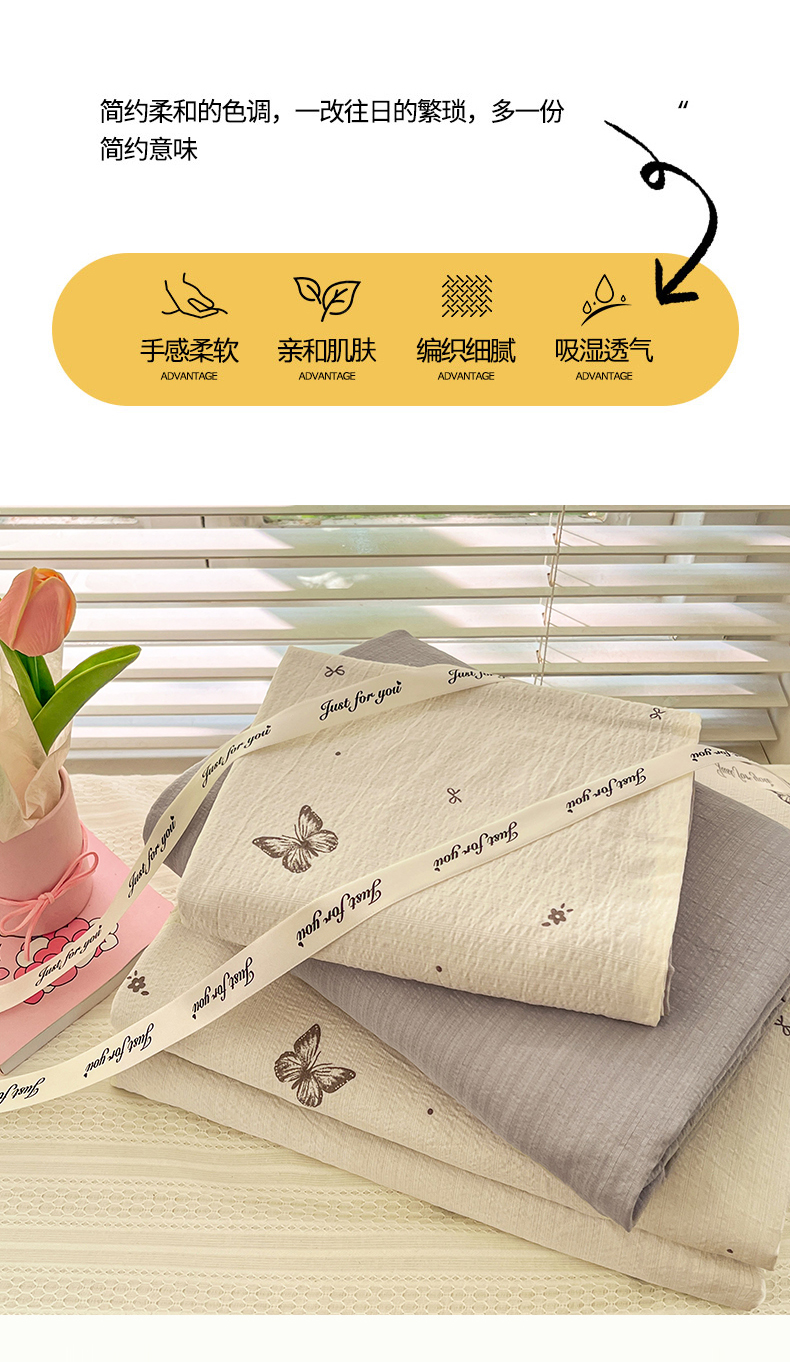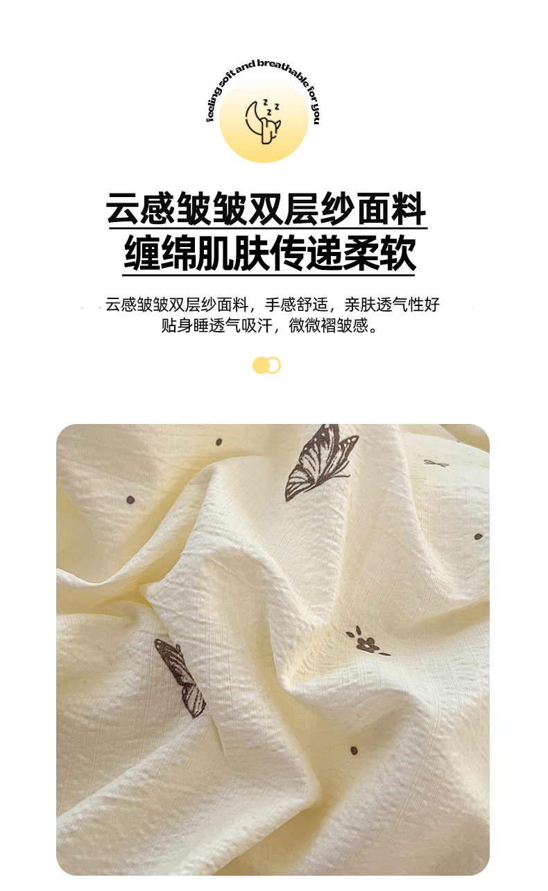 当前位置: 91家纺网 > 商品网购 > 床品套件 > 四件套 > 双层纱四件套 > 优尚佳生活馆 2025新款高克重云感双层纱印花四件套 蝶语素织