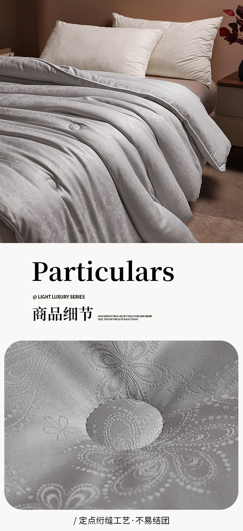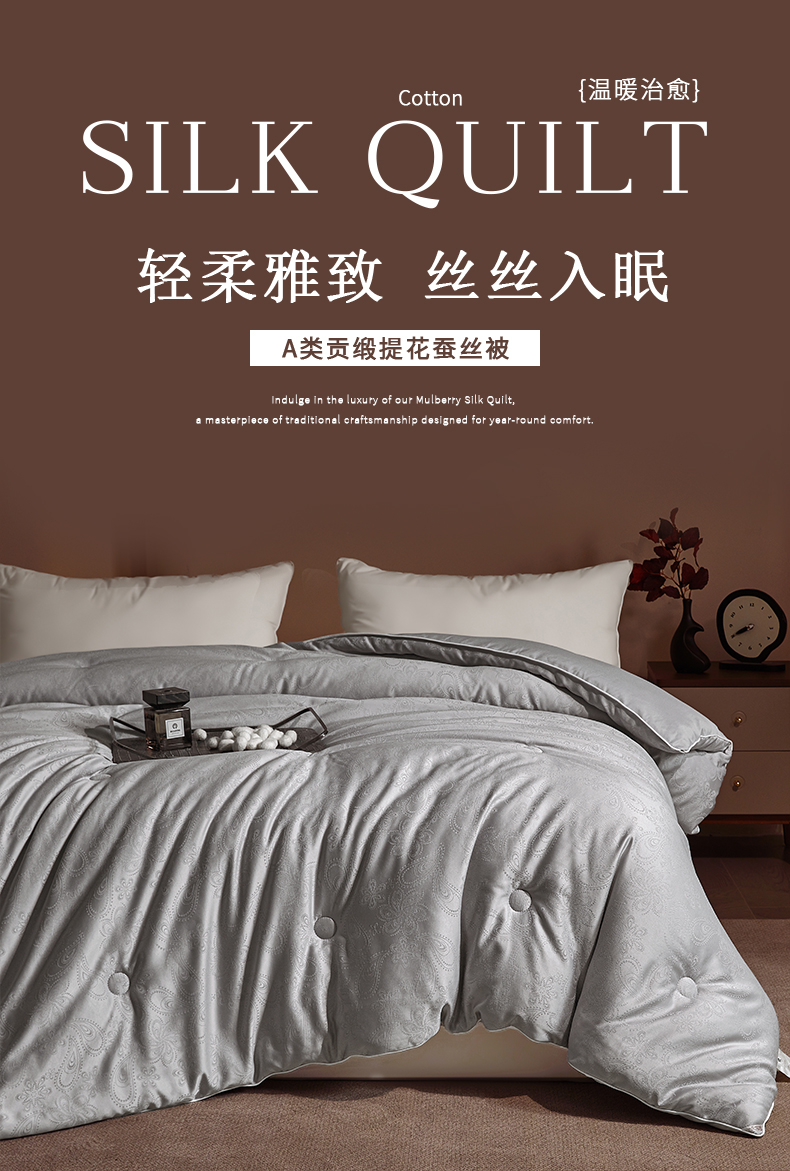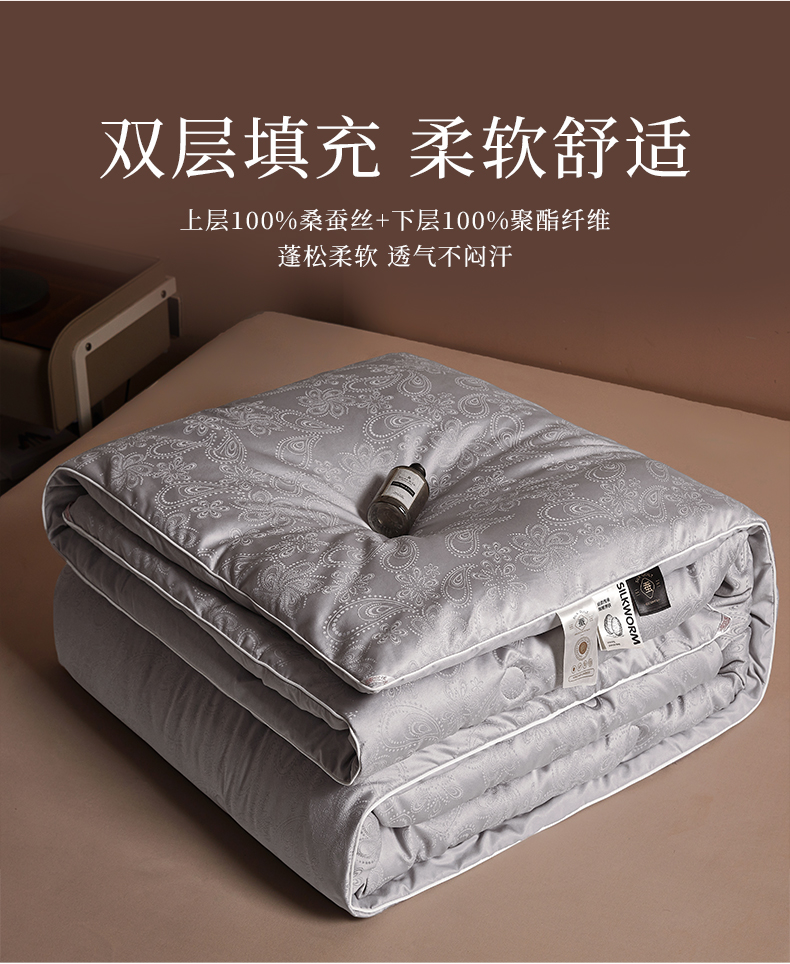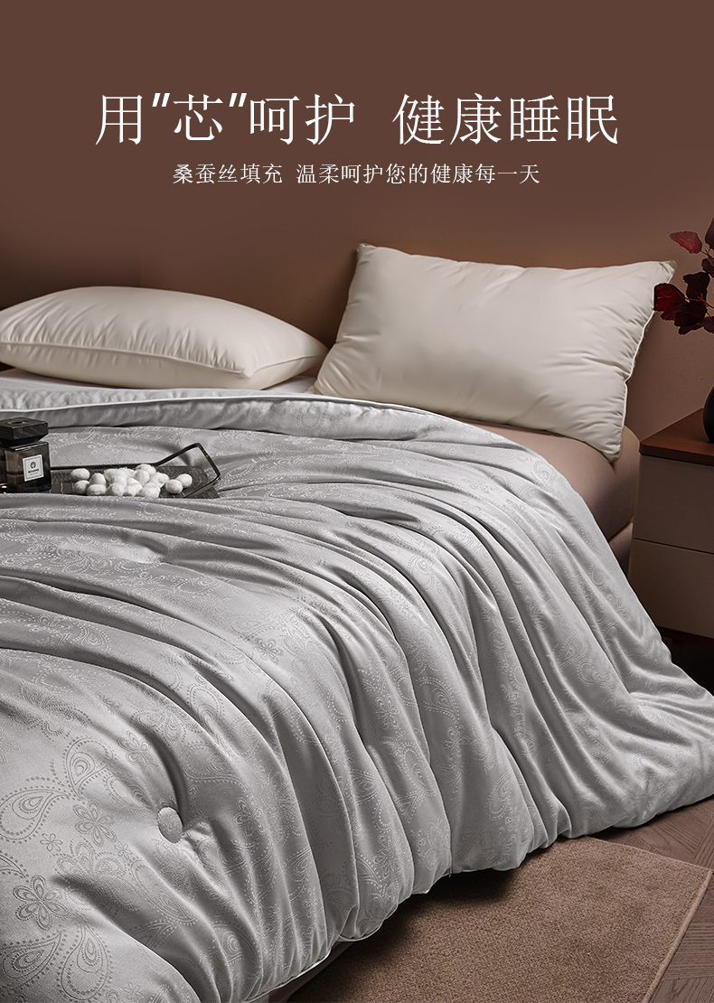 当前位置: 91家纺网 > 商品网购 > 被子 > 冬被 > 欢乐季 2025新款贡缎提花蚕丝被 被子被芯 灰色