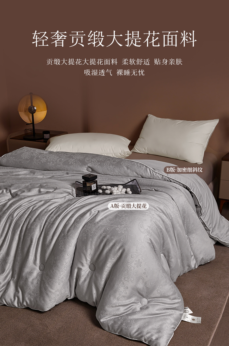 • 91家纺网 家纺一手货源 找家纺 欢乐季 2025新款贡缎提花蚕丝被 被子被芯 灰色