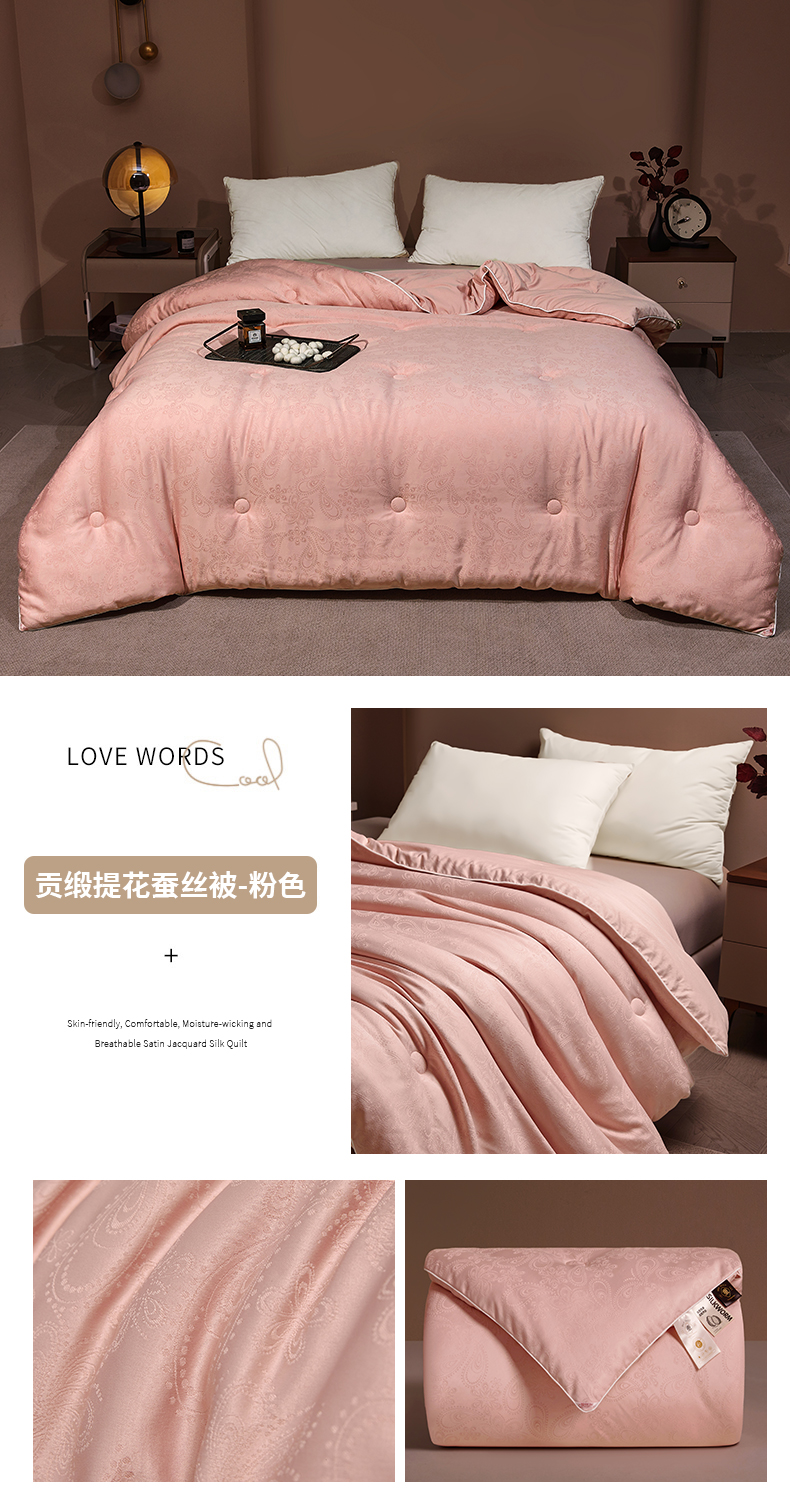 • 91家纺网 家纺一手货源 找家纺 (总)欢乐季 2025新款贡缎提花蚕丝被 被子被芯,白色,粉色,灰色